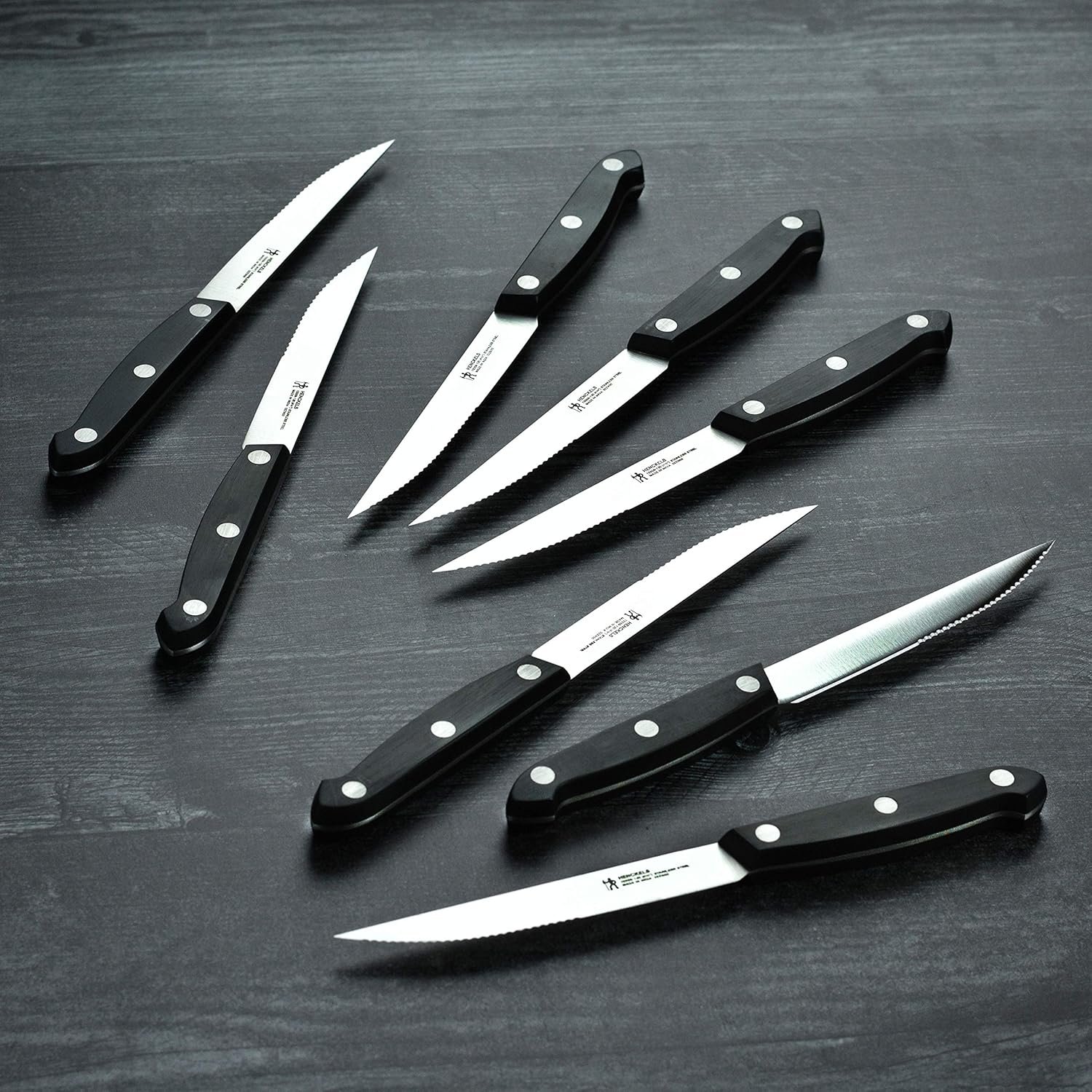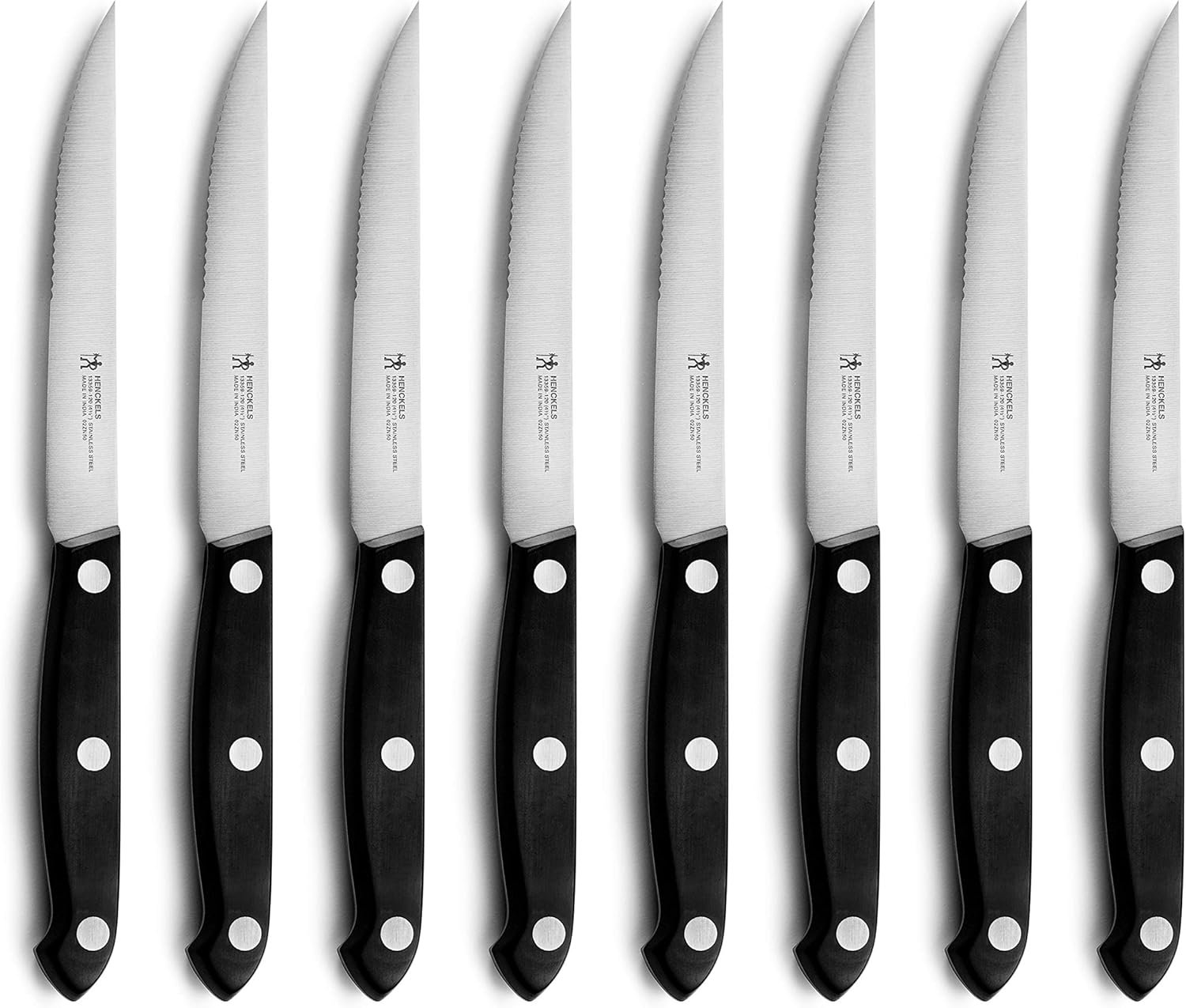 - Eight 4.5" Stamped Serrated Steak Knives