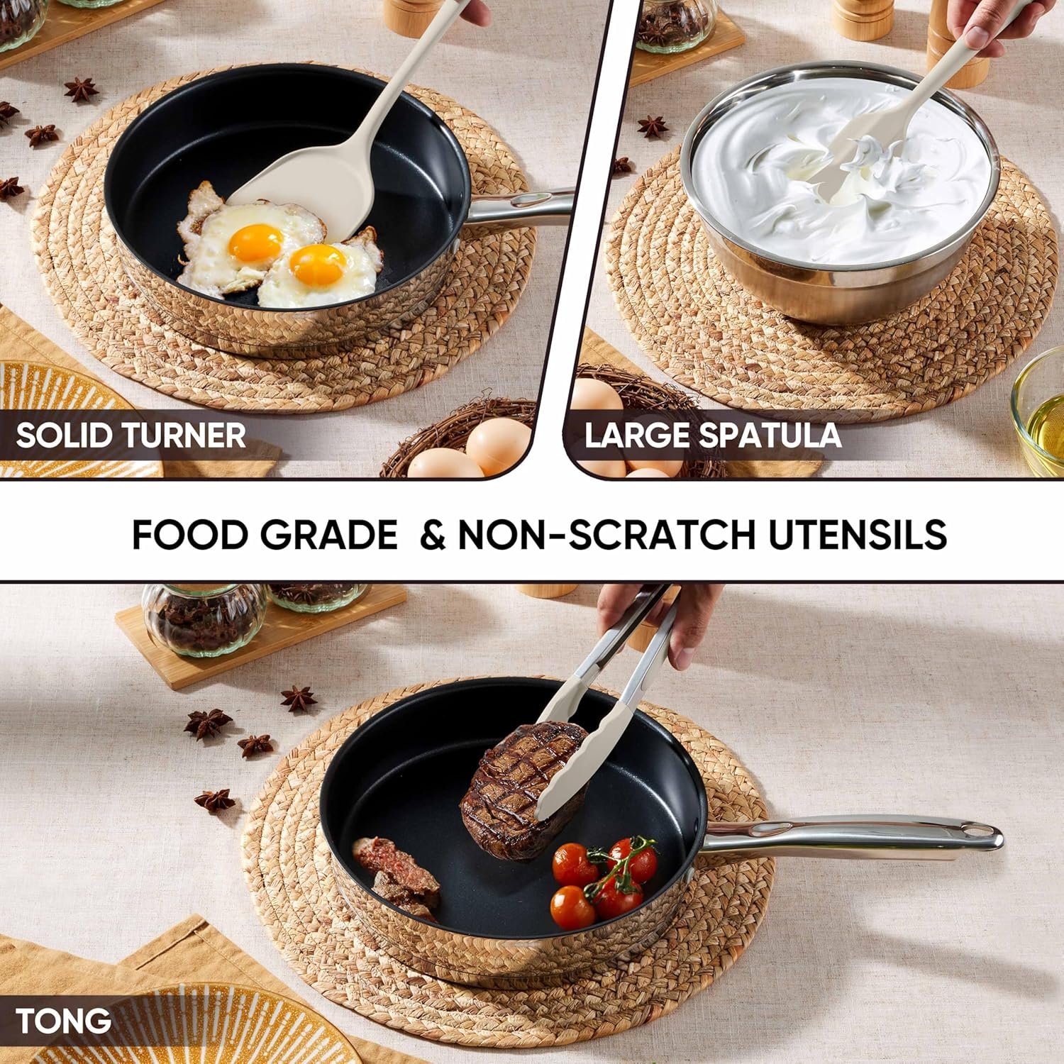 - Premium silicone and cookware friendly