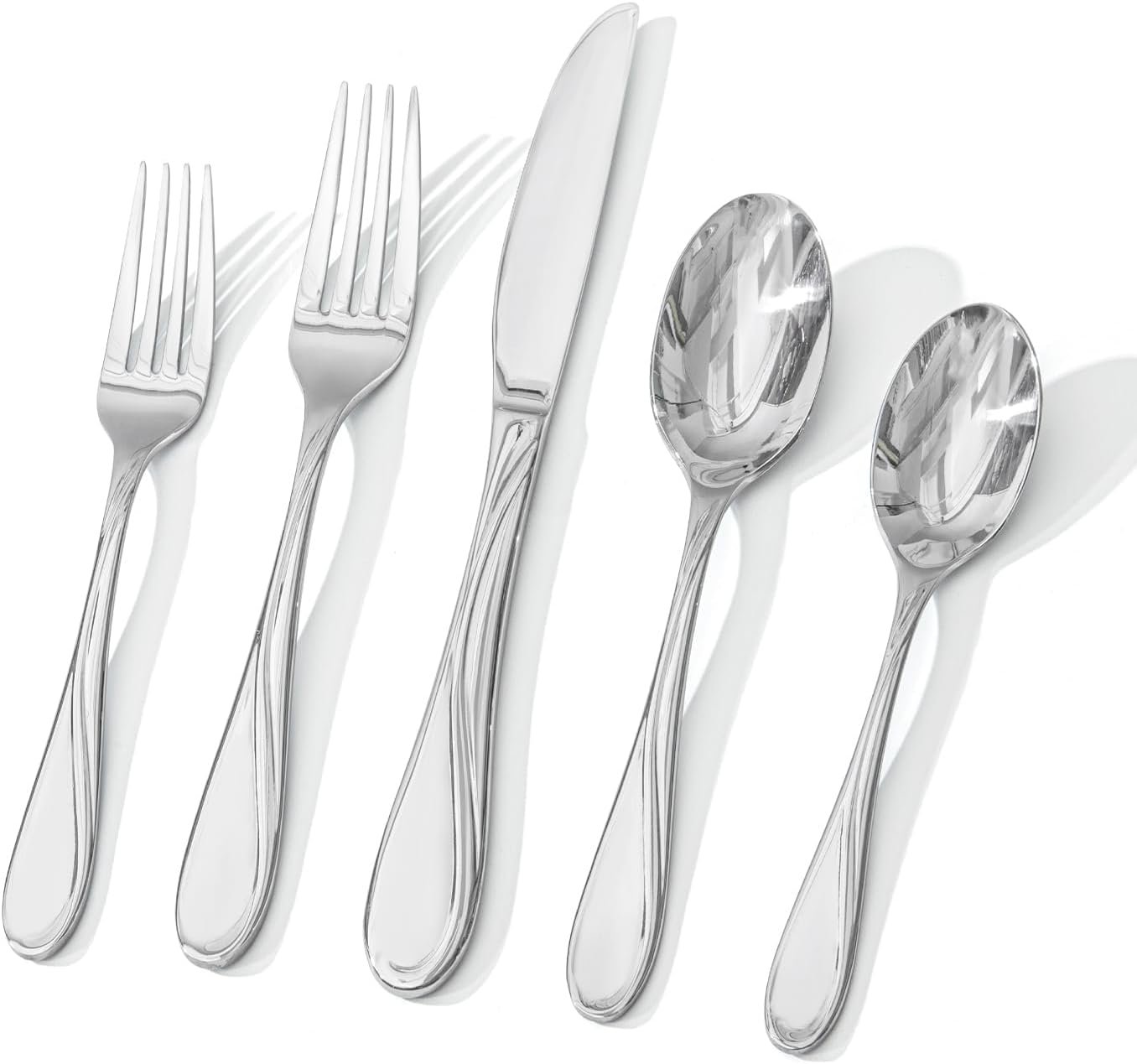 - Fibonacci Patterns: The set is crafted from high-performance 18/0 stainless steel and features a unique wave pattern inspired by Fibonacci spirals. This design not only adds aesthetic appeal but also provides an anti-slip performance, reducing fingerprints and making dishwasher cleaning easier.