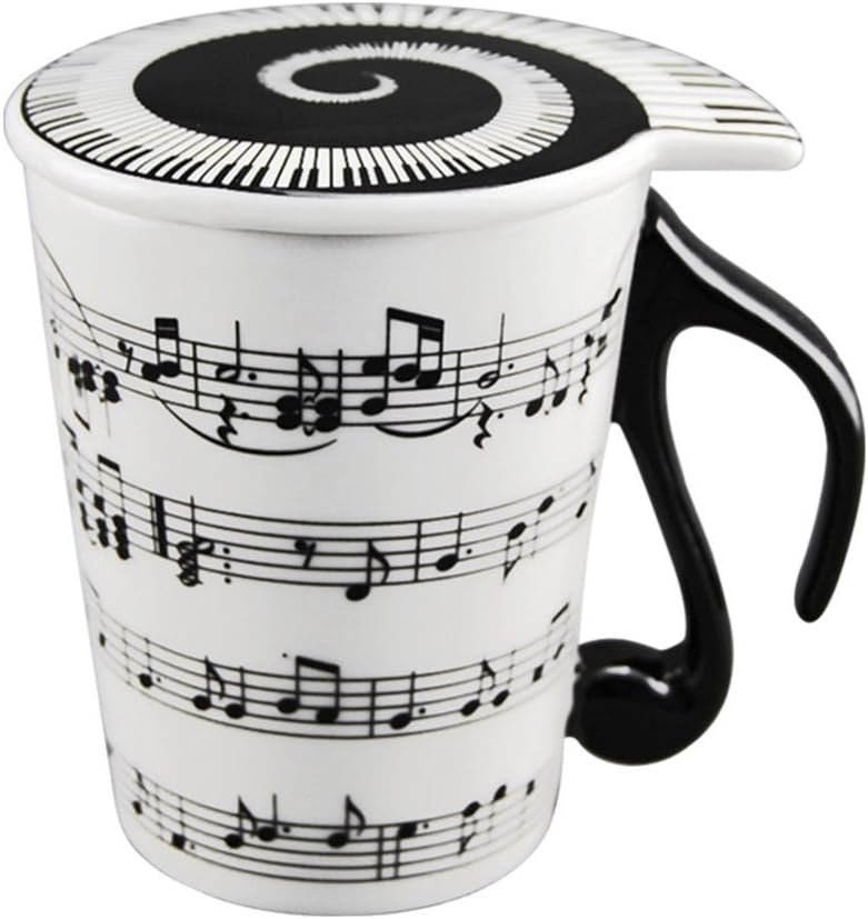 HLJgift Creative Ceramic Musician Coffee Mug Tea Cup with Lid Staves Music Notes as Valentine’s Day Gift Teacher Gift
