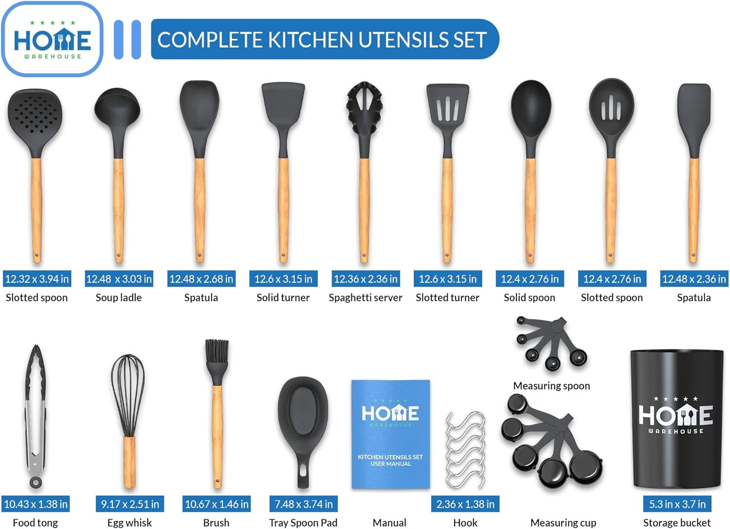 • Comprehensive set with various utensils for all cooking needs