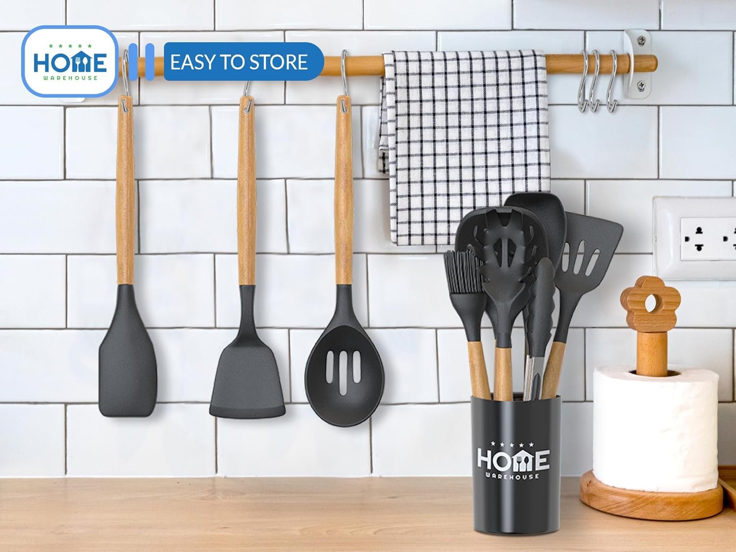 The ergonomic handles are designed to provide a secure grip while cooking at high temperatures, and the wooden handles are excellent heat insulators, ensuring safety while cooking. The set also includes storage options, such as a bucket and hooks, to keep everything organized and within reach.