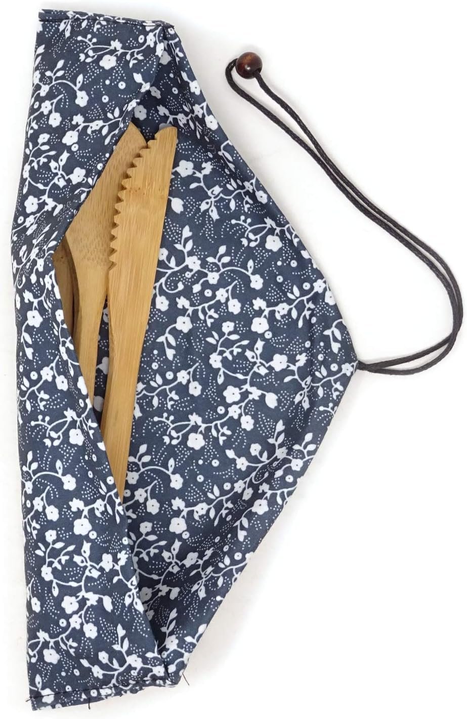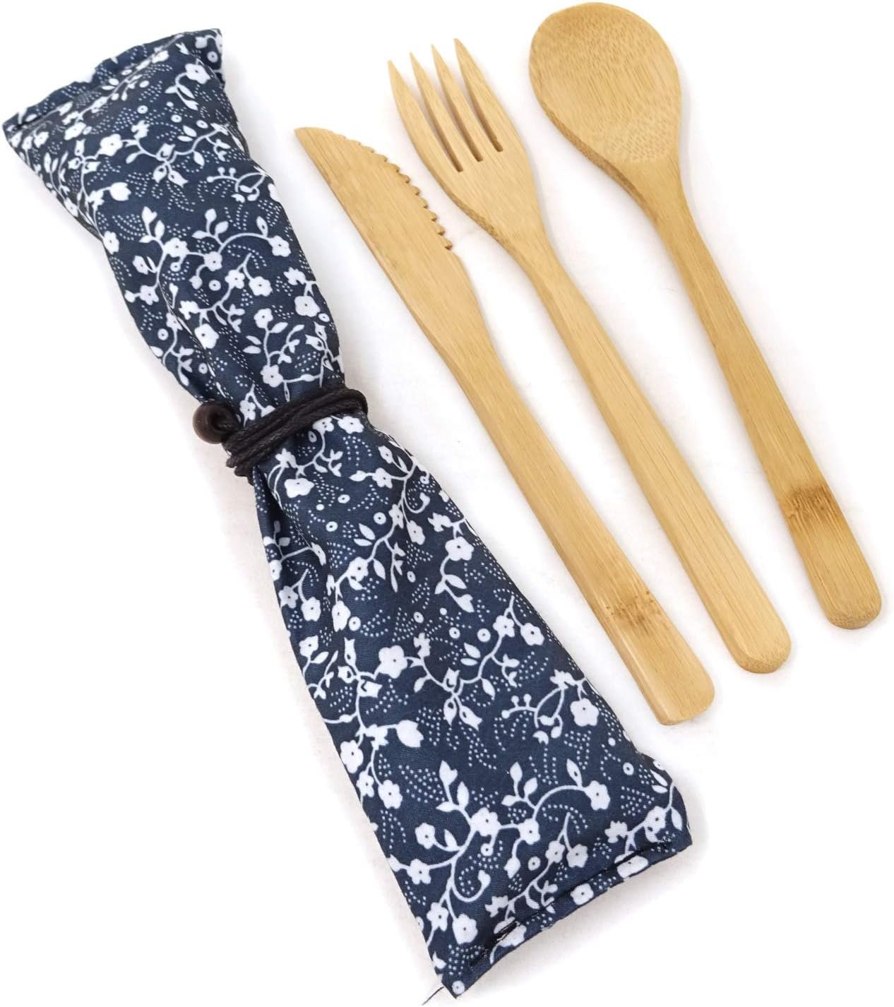 - Package includes: 3pcs bamboo flatware set with a cloth pouch