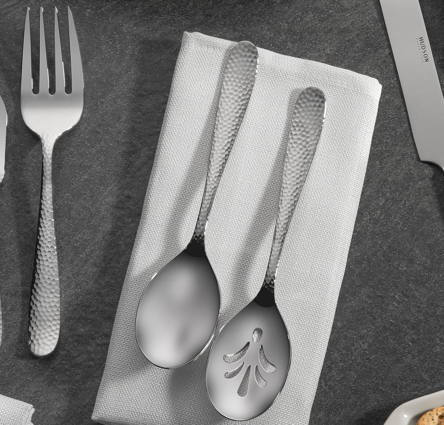 Home Flatware Serving Sets Hudson Essentials 9-Piece Bergamo Hammered 18/10 Stainless Steel Serving Fork & Serving Spoon Set – Flatware Silverware