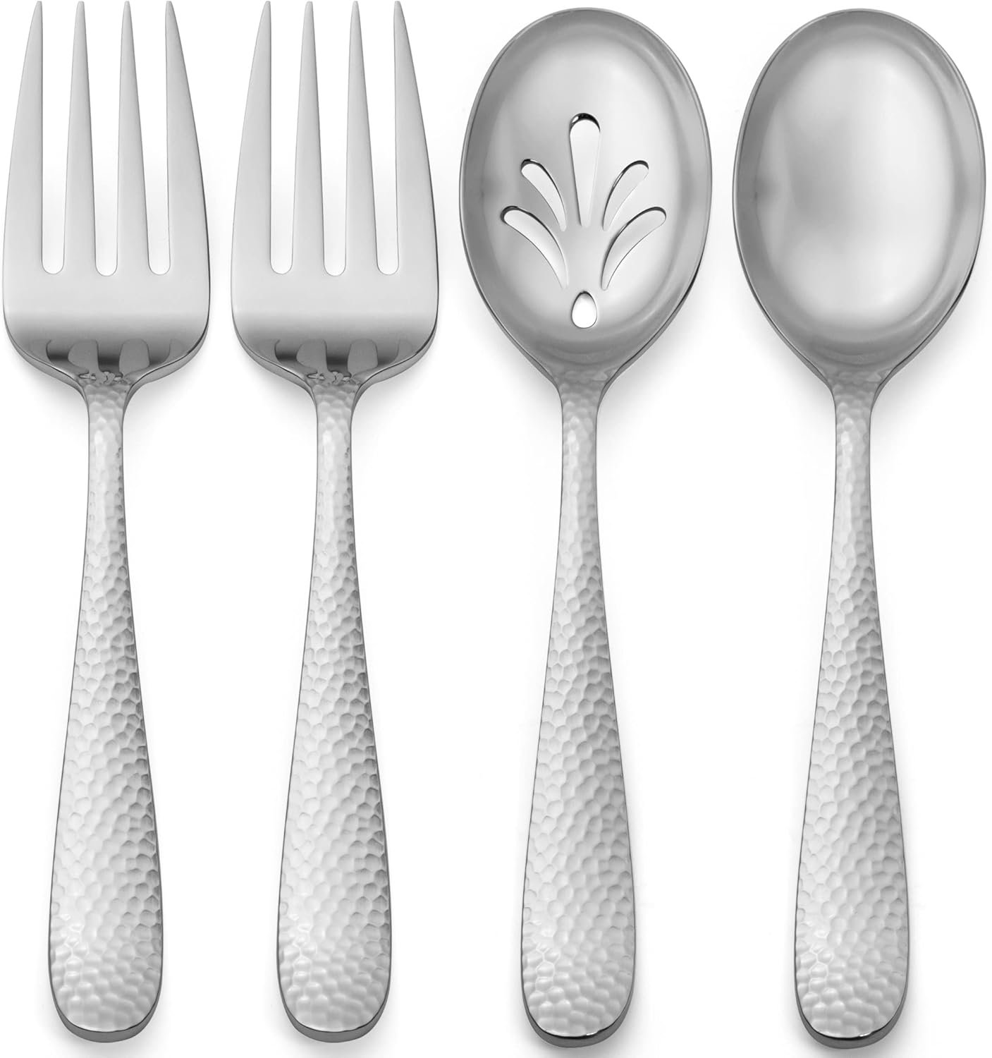 Hudson Essentials 9-Piece Bergamo Hammered 18/10 Stainless Steel Serving Fork & Serving Spoon Set – Flatware Silverware
