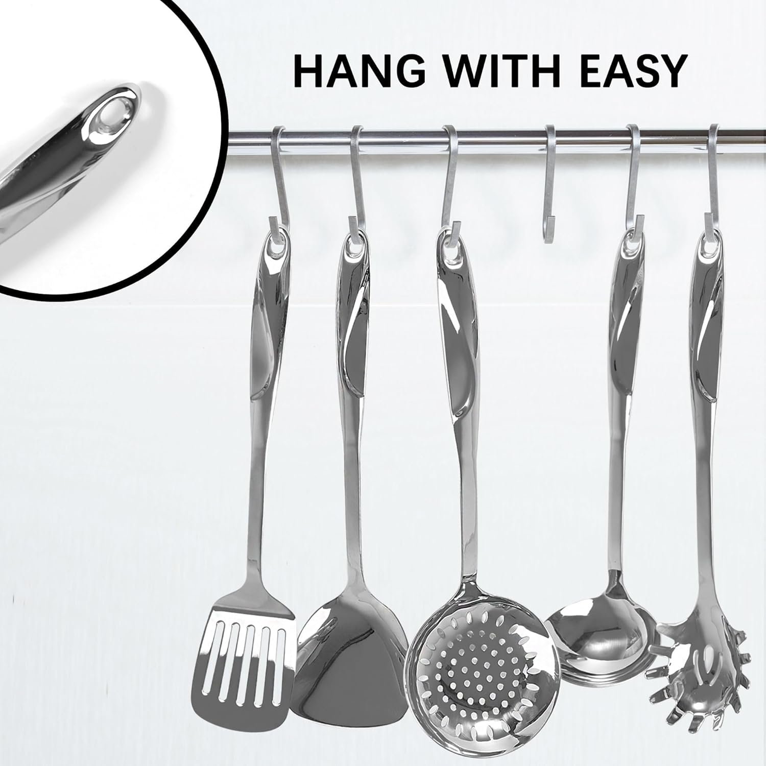 - Convenient storage with hanging holes on each handle