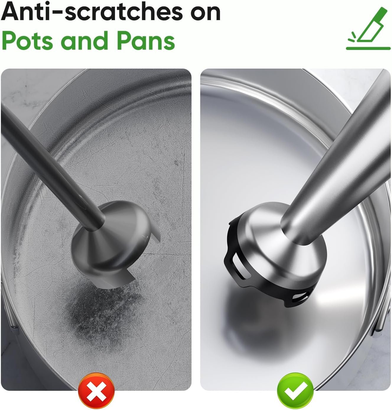 - Protect Your Cookware: The bell-shaped base and food-grade nylon blade guard protect your pots and pans from scratches, extending the life of your kitchen tools.