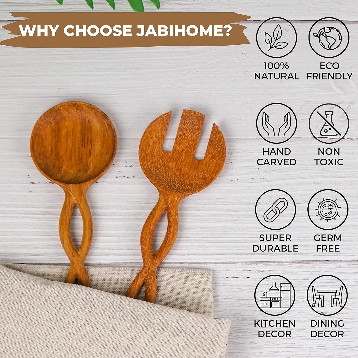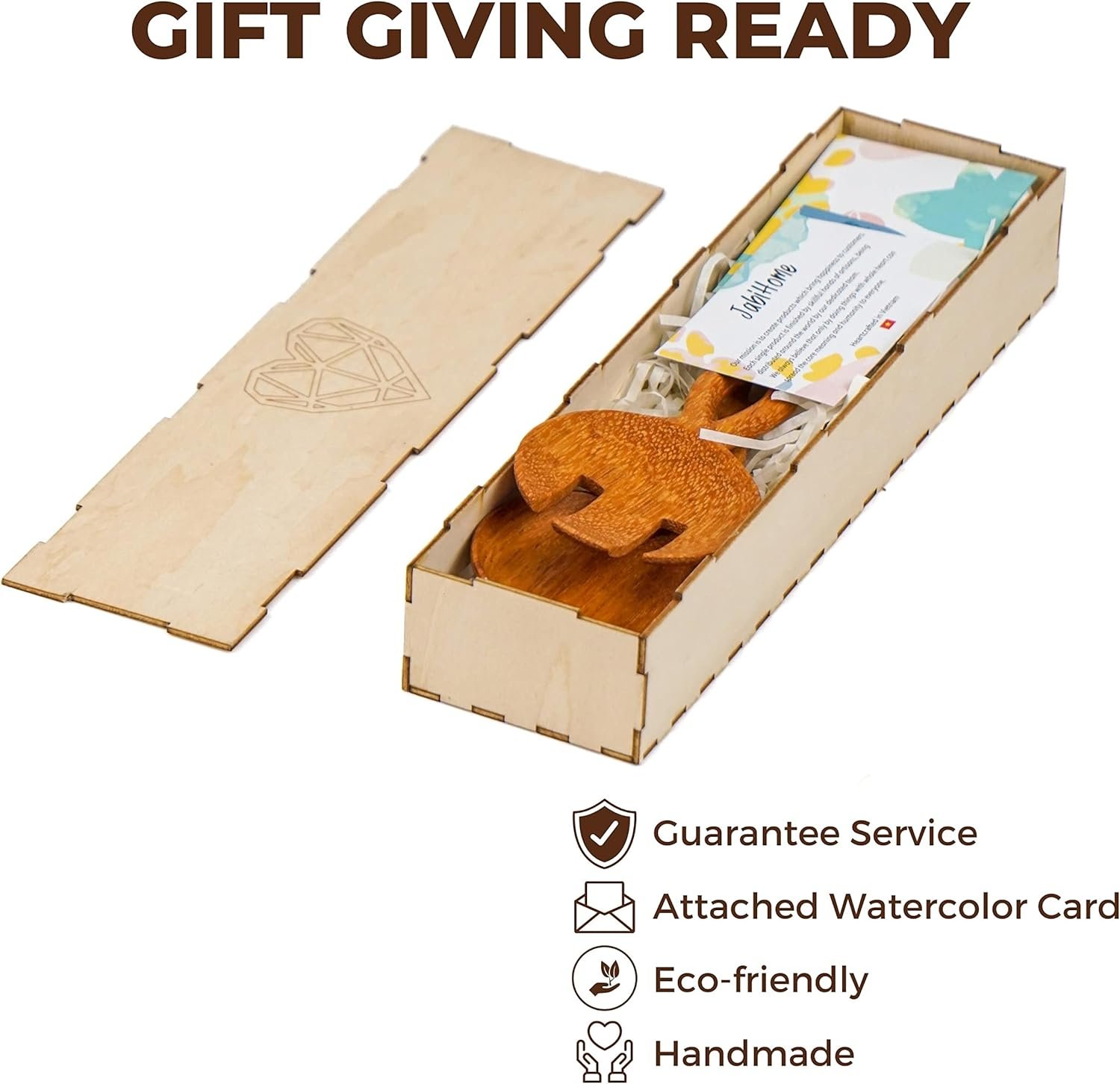 Our team guarantees the quality of all our products. We hope you will love your purchase, and if not, please let us know. These wooden salad servers are a must-have for any kitchen, and with their unique design and natural wood construction, they make a perfect gift for any occasion, including birthdays, holidays, or as a housewarming gift.