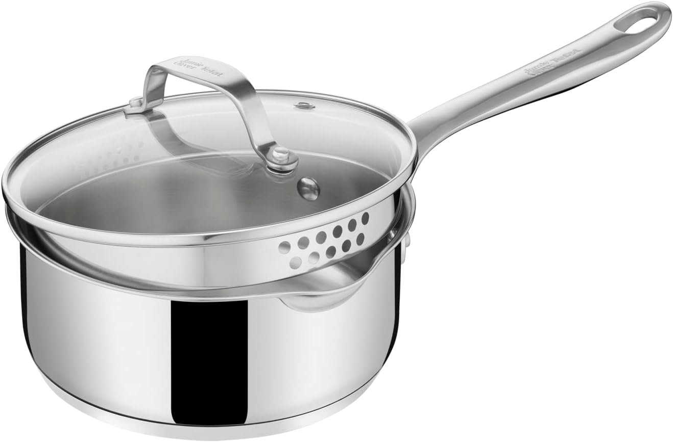 Jamie Oliver by Tefal Cook’s Direct Stainless Steel 5 Piece Cookware Set – – E304S544