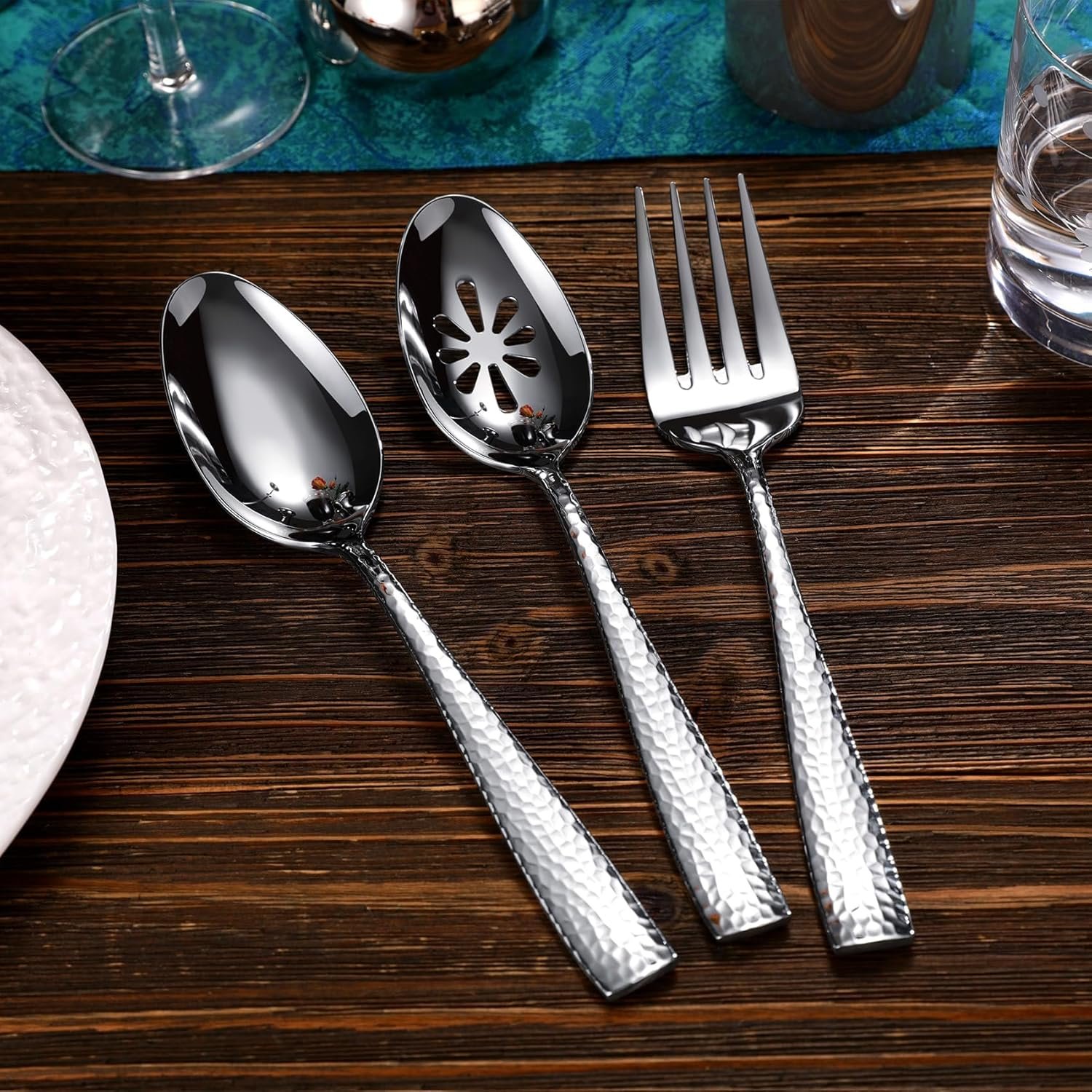 This stunning silverware set is an easy way to elevate every meal. With its elegant and sophisticated design, it keeps your family safe and healthy while adding a touch of luxury to your dinner table. Whether you’re hosting a dinner party, celebrating a special occasion, or simply enjoying a family meal, KEAWELL’s premium hammered silverware set is the perfect choice. Impress your guests with its eye-catching design and exceptional quality, and enjoy every meal with comfort and ease.