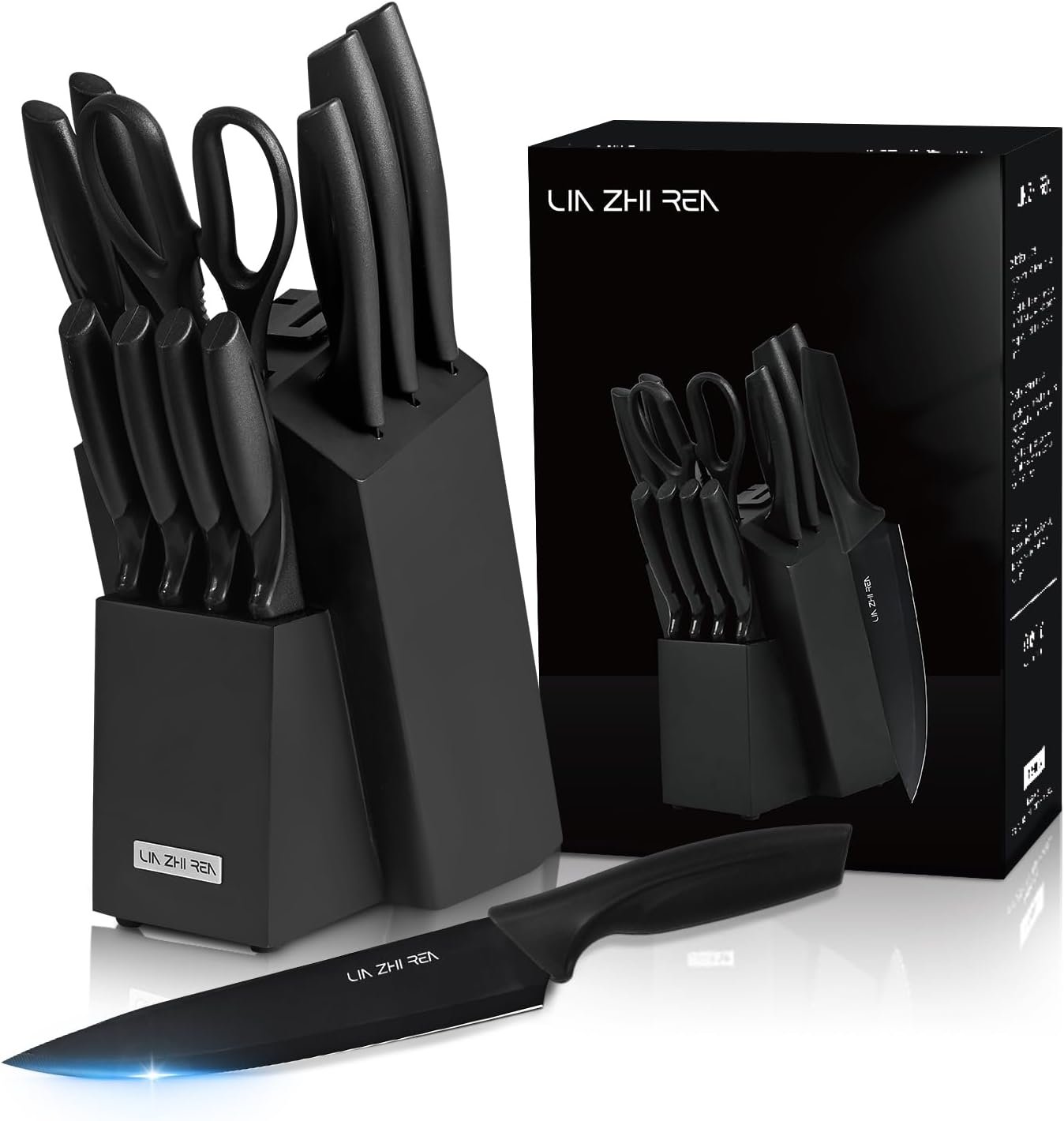 - Professional 13-Piece Knife Block Set: Complete kitchen knives set with block and sharpener.