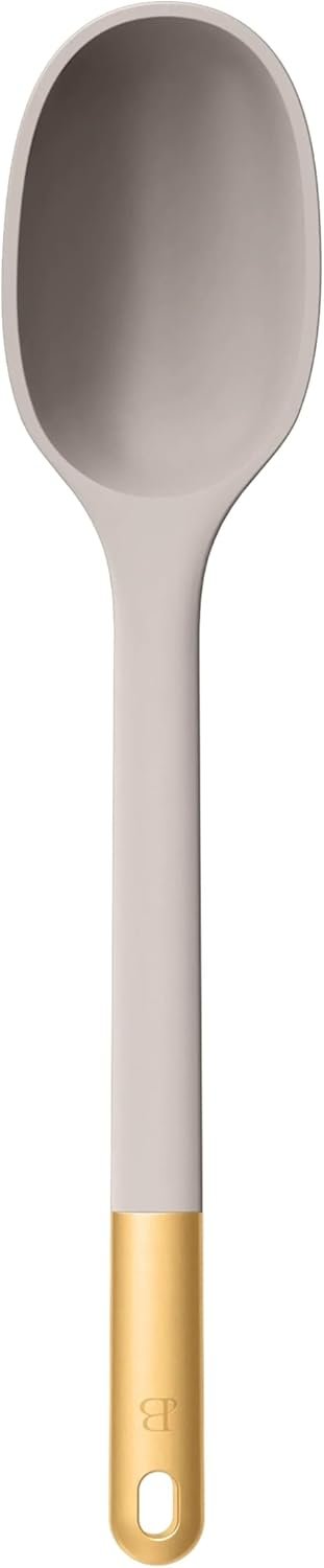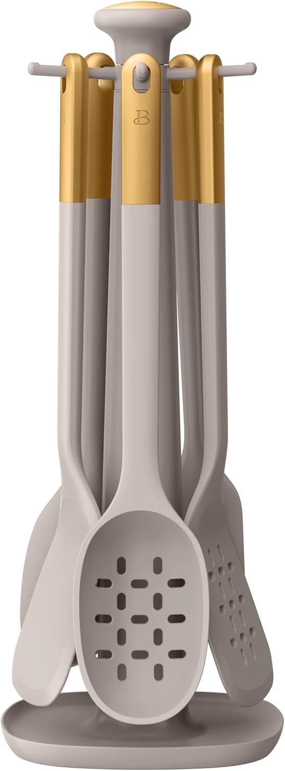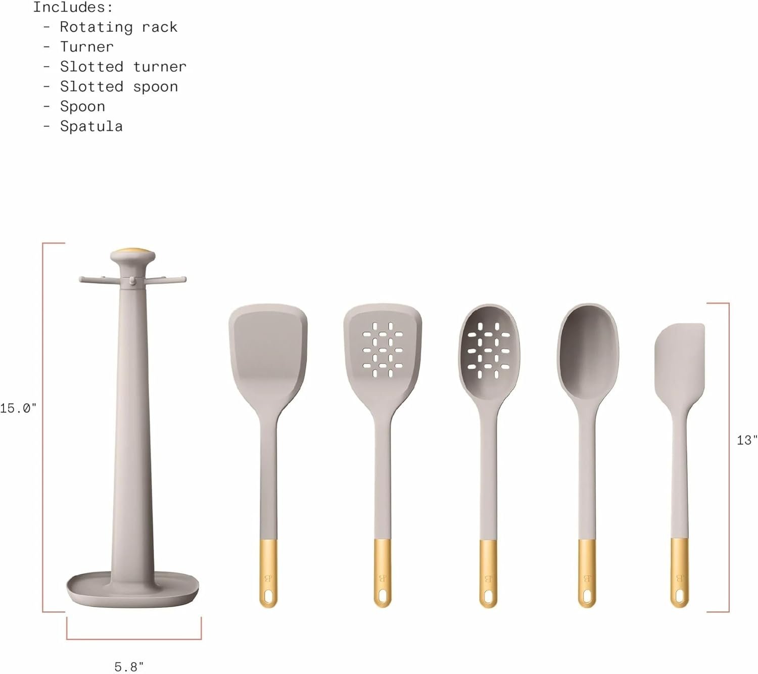 Home Cooking Utensil Sets Kitchen Utensil Set, 6-Piece Silicone Kitchen Utensil Set with Rotating Rack – Non-Scratch, Heat Resistant Tools & Gold Stainless Steel Handles (Taupe)