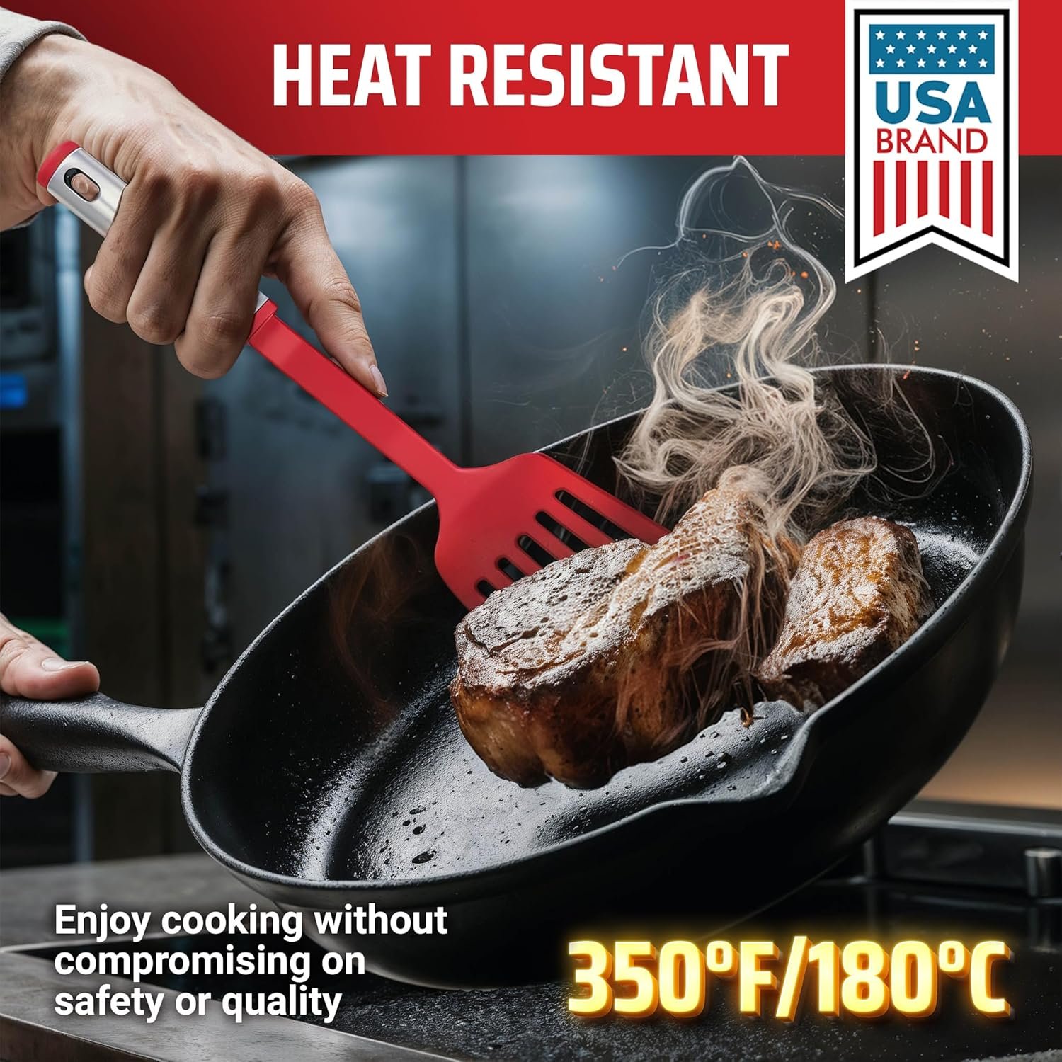 • Heat resistant and safe for use with non-stick pans