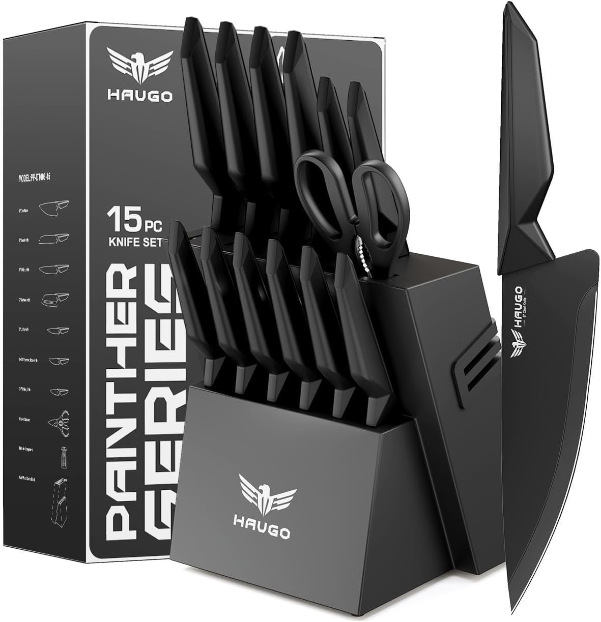 - 15-piece set includes a variety of knives for different kitchen tasks