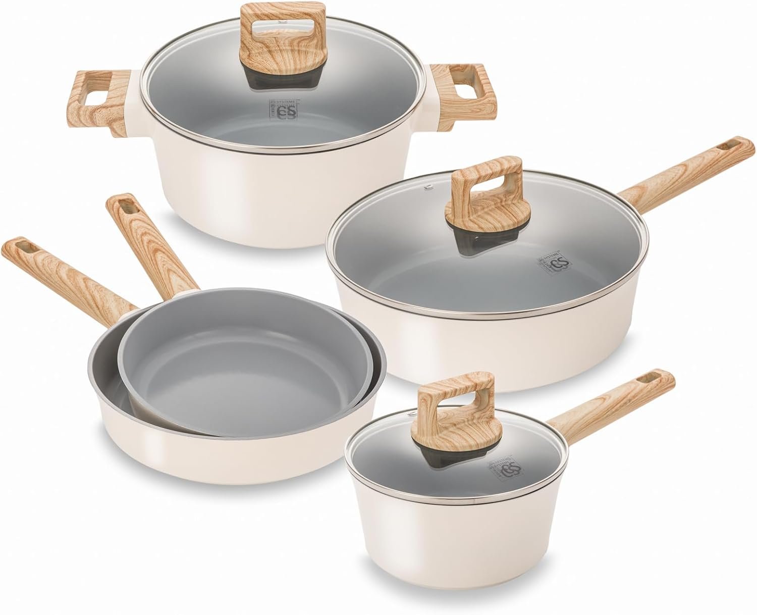 KOCH SYSTEME CS Nonstick Ceramic Cookware Set, 8 Piece Pots and Pans Set with Stay-Cool Handles, Non-toxic Ceramic Kitchen Cooking Set, Induction Compatible Dishwasher Safe, PFAS and PFOA Free, 8pcs