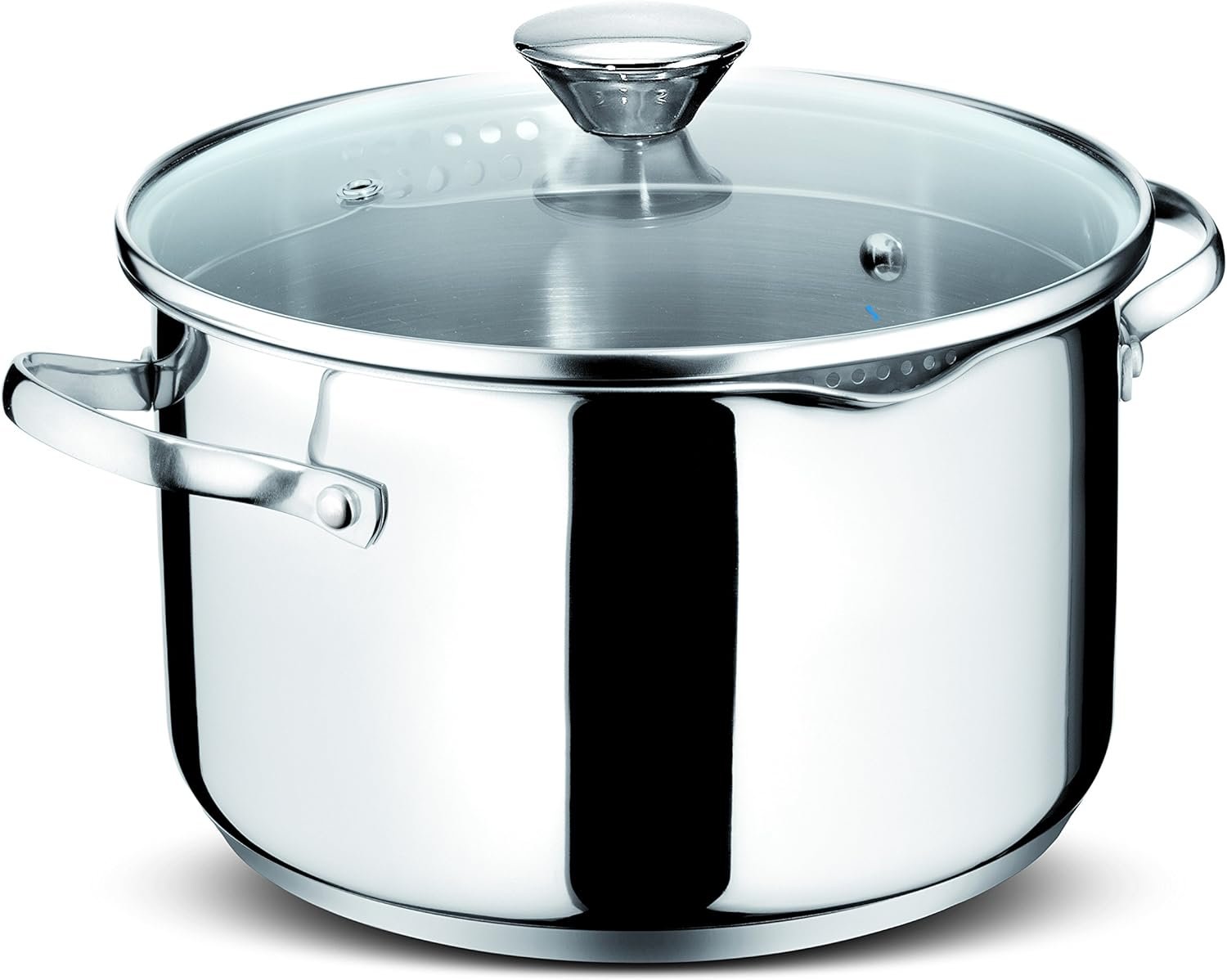 The Lagostina 716600009 Battery Smart cookware set is a 9-piece set made of 18/10 stainless steel, designed to provide excellent cooking performance. The triple encapsulated bottom, known as Lagoseal Plus, ensures uniform heat diffusion and is suitable for induction cooking. The set includes glass lids with drilling, allowing for easy draining of liquids. The cookware features a border with a spout, making it convenient to drain liquids.