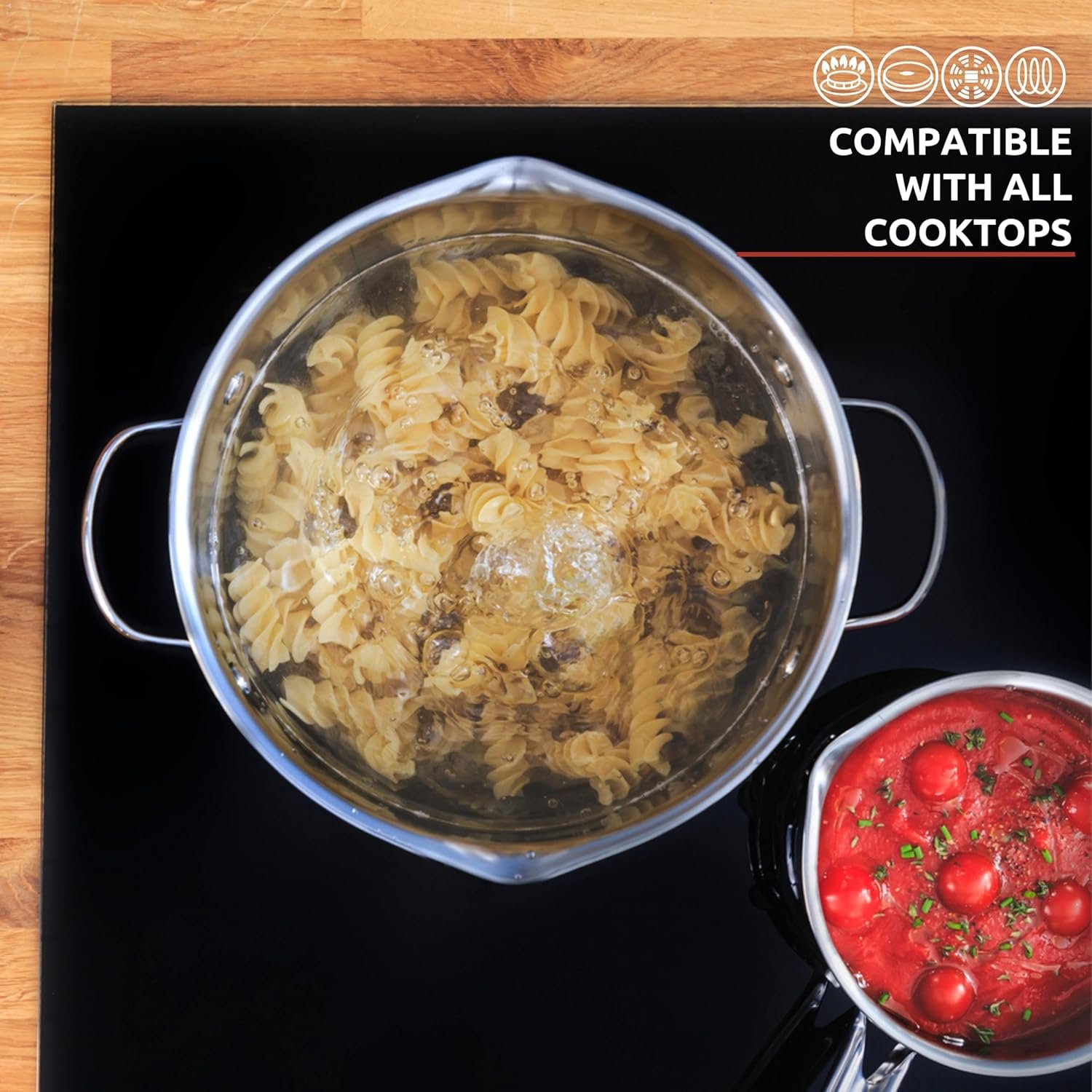 - Suitable for various heat sources, including induction