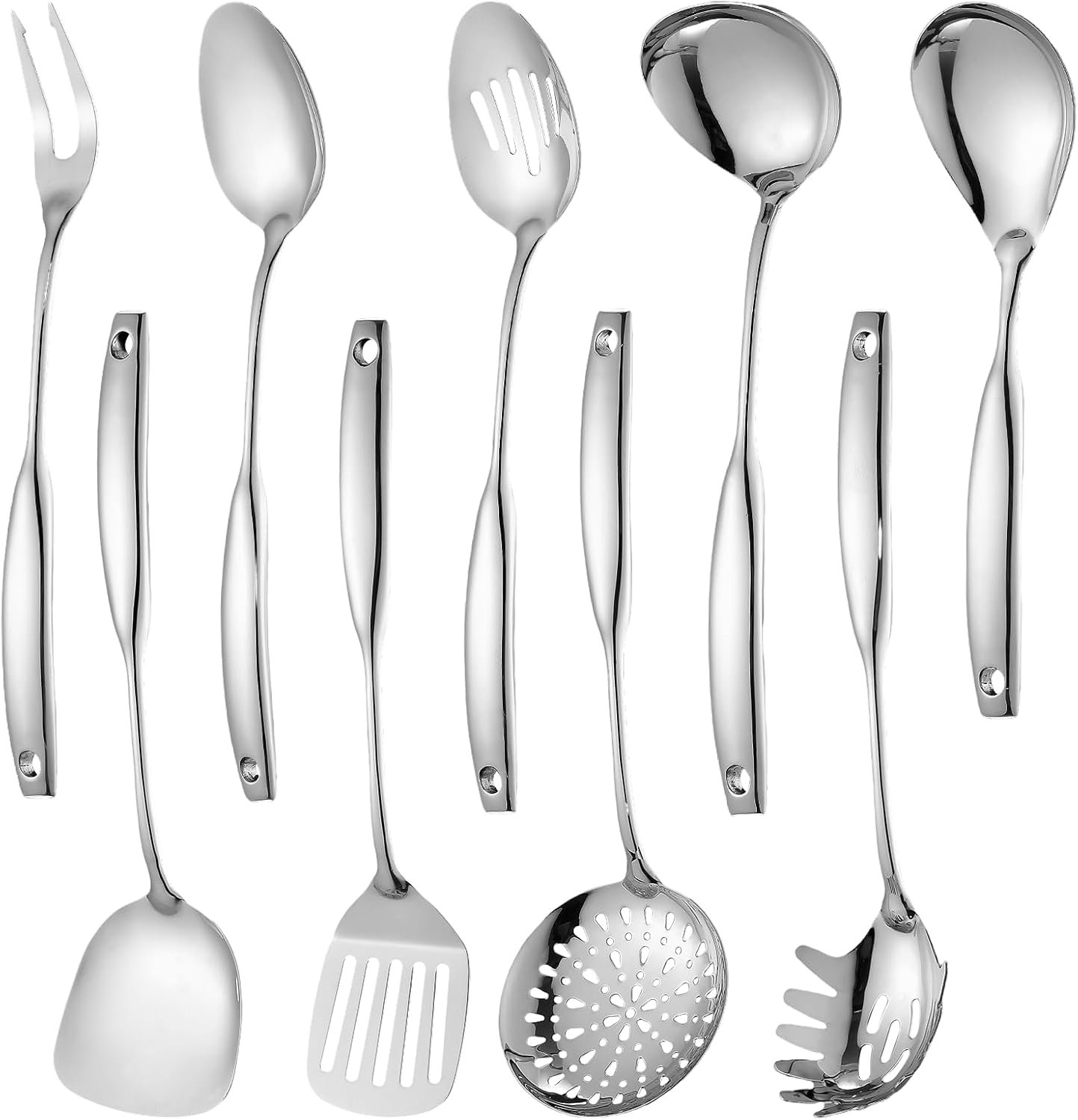 Lazycorner 304 Stainless Steel Kitchen Utensils Set 9-Piece Polished Mirror Finish Cooking Spoons, Slotted Spoon, Turner, Spatula, Pasta Spoon– Dishwasher Safe, Rust-Resistant