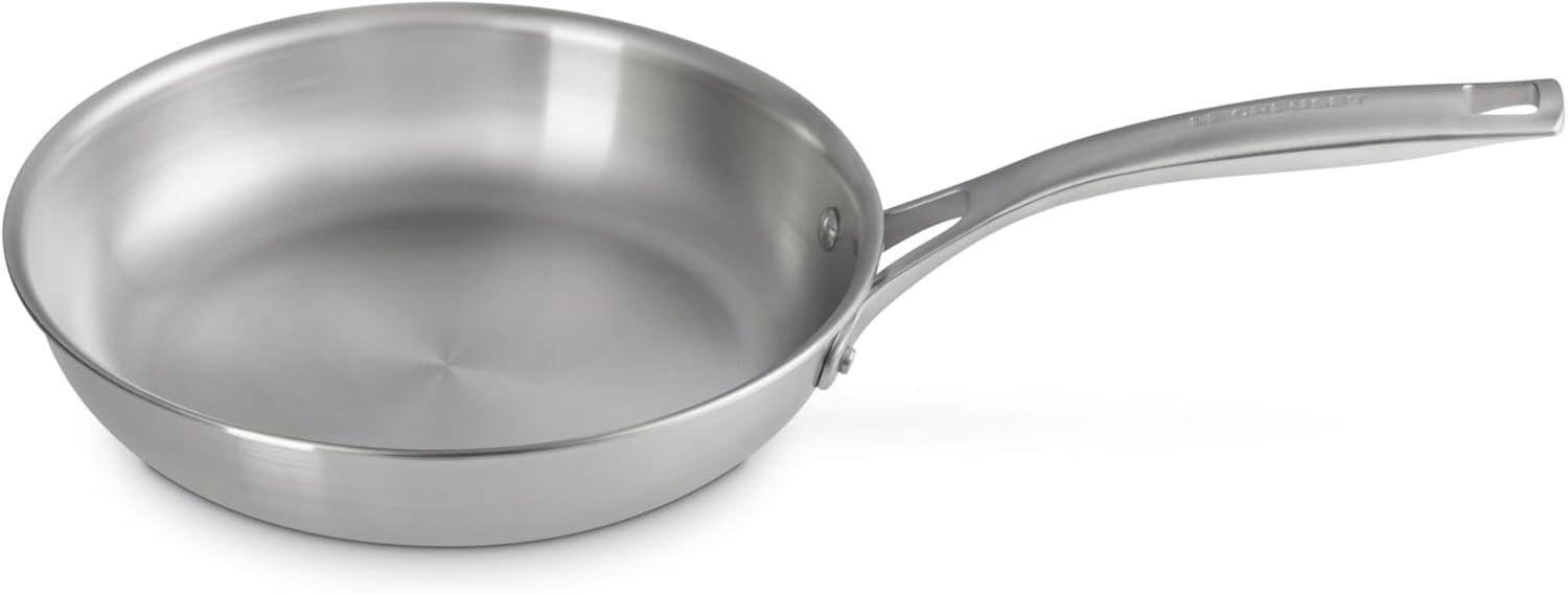 Le Creuset Essential Stainless Steel cookware is expertly crafted for the everyday cook, combining performance, style, and lasting quality. This durable and easy-to-maintain cookware features a triple-layer construction with an aluminum core bonded between layers of stainless steel, ensuring even heat distribution. The full matte brushed exterior is resistant to scratches and marks, making it a practical choice for daily cooking.