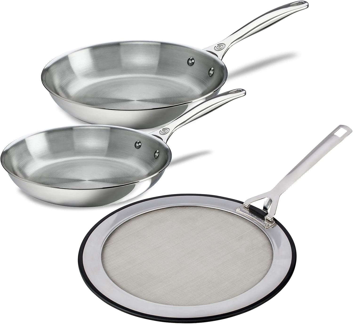 Le Creuset’s stainless steel frypans are designed with the home cook in mind, offering a combination of durability, performance, and style. This bundle includes a Le Creuset 8 Inch Stainless Steel Frypan, a Le Creuset 10 Inch Stainless Steel Frypan, and a Splatter Guard, providing everything needed for a variety of cooking tasks.