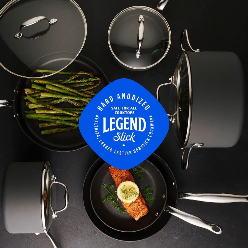 Home Kitchen Cookware Sets Legend Slick 10 pc Hard Anodized Nonstick Cookware – Next Gen Hard Anodized Aluminum & Steel Chef Grade Pots and Pans Set for Home – PFOA Free, Non-Toxic Non-Stick Surface – Oven & Dishwasher Safe