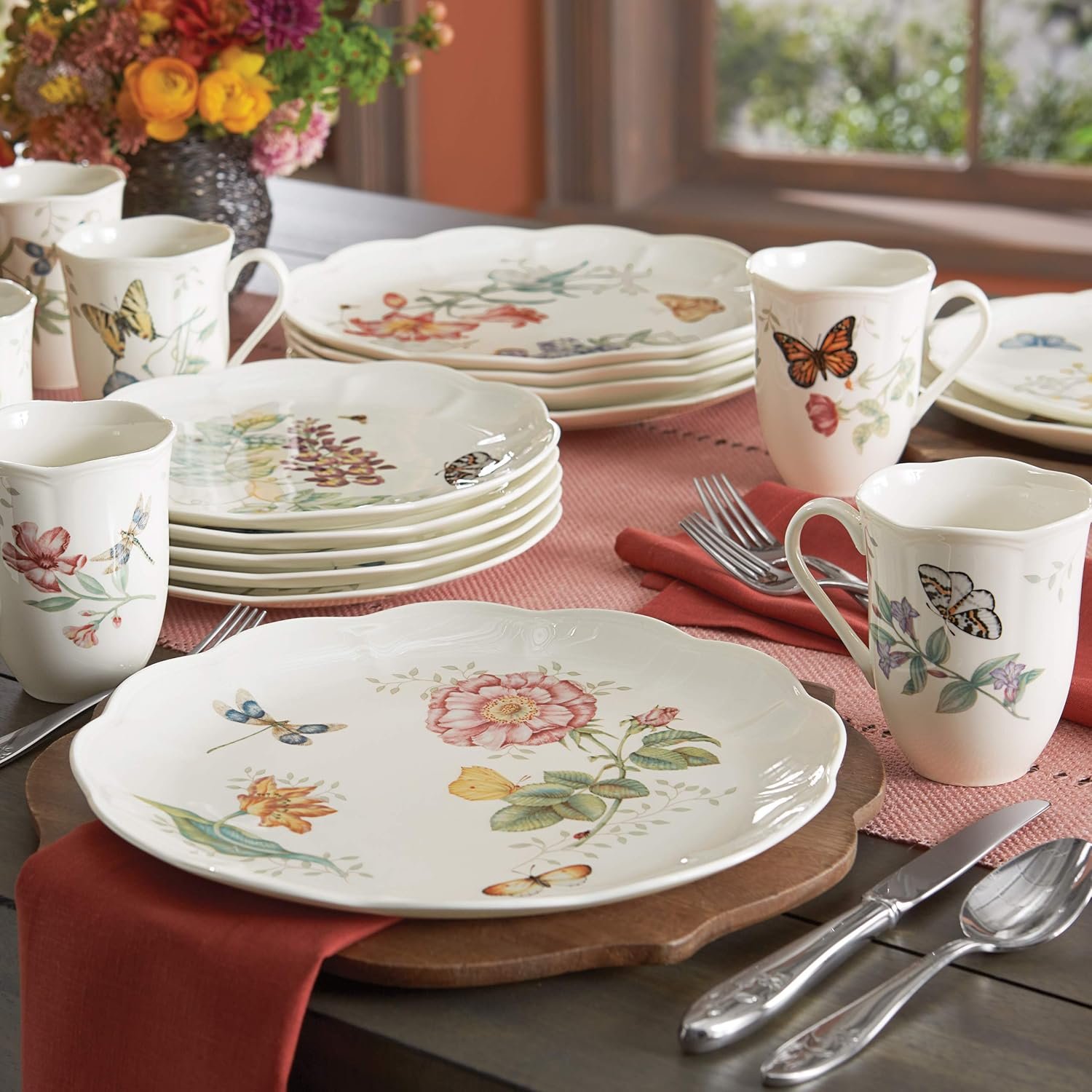 Lenox Dinnerware Set, Butterfly Meadow 18-Piece Set, Service For 6, White Porcelain, Butterfly And Flower Designs, Plates And Bowls Sets, Dishwasher Safe, Home & Kitchen (18 Pieces, Assorted)