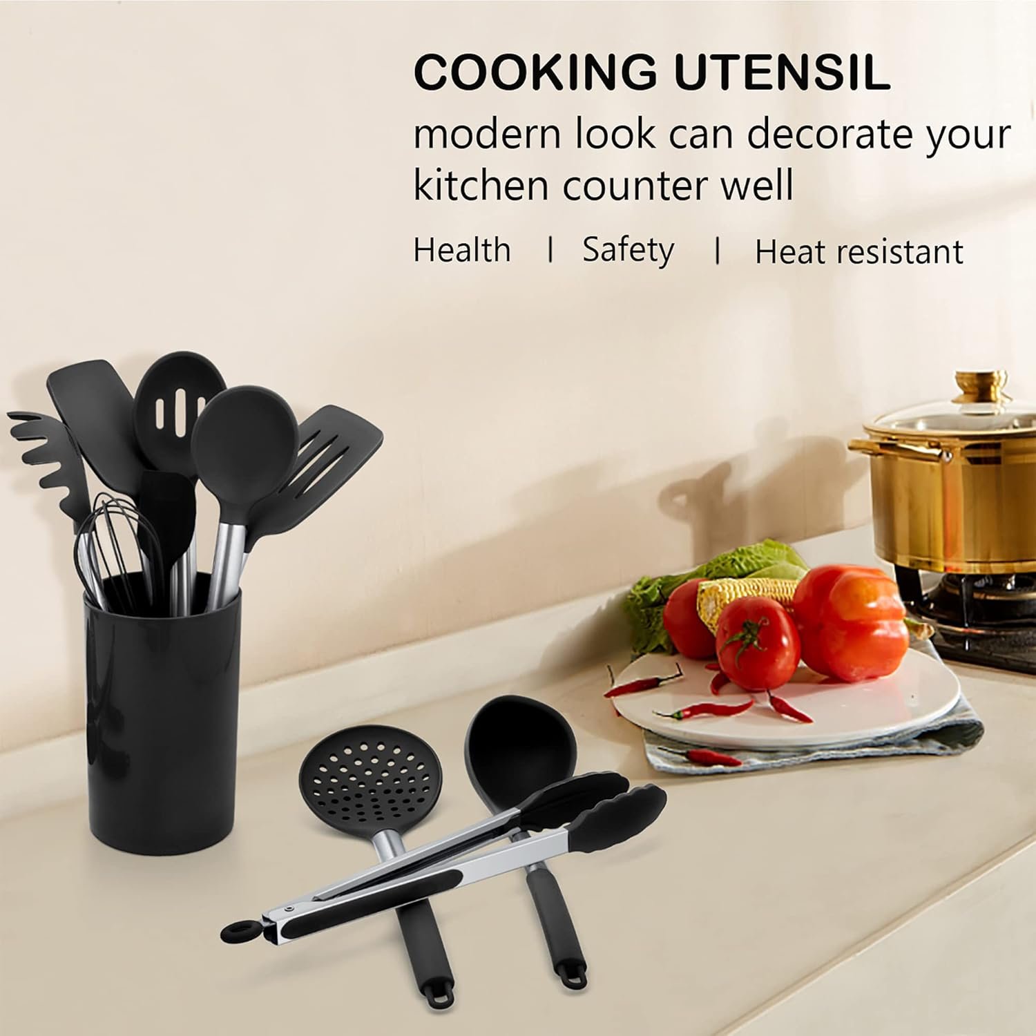 Our silicone cooking utensils set won’t scratch the non-stick surface of your pots and pans, as the silicone is soft and flexible. The attractive look is a great addition to your counter.