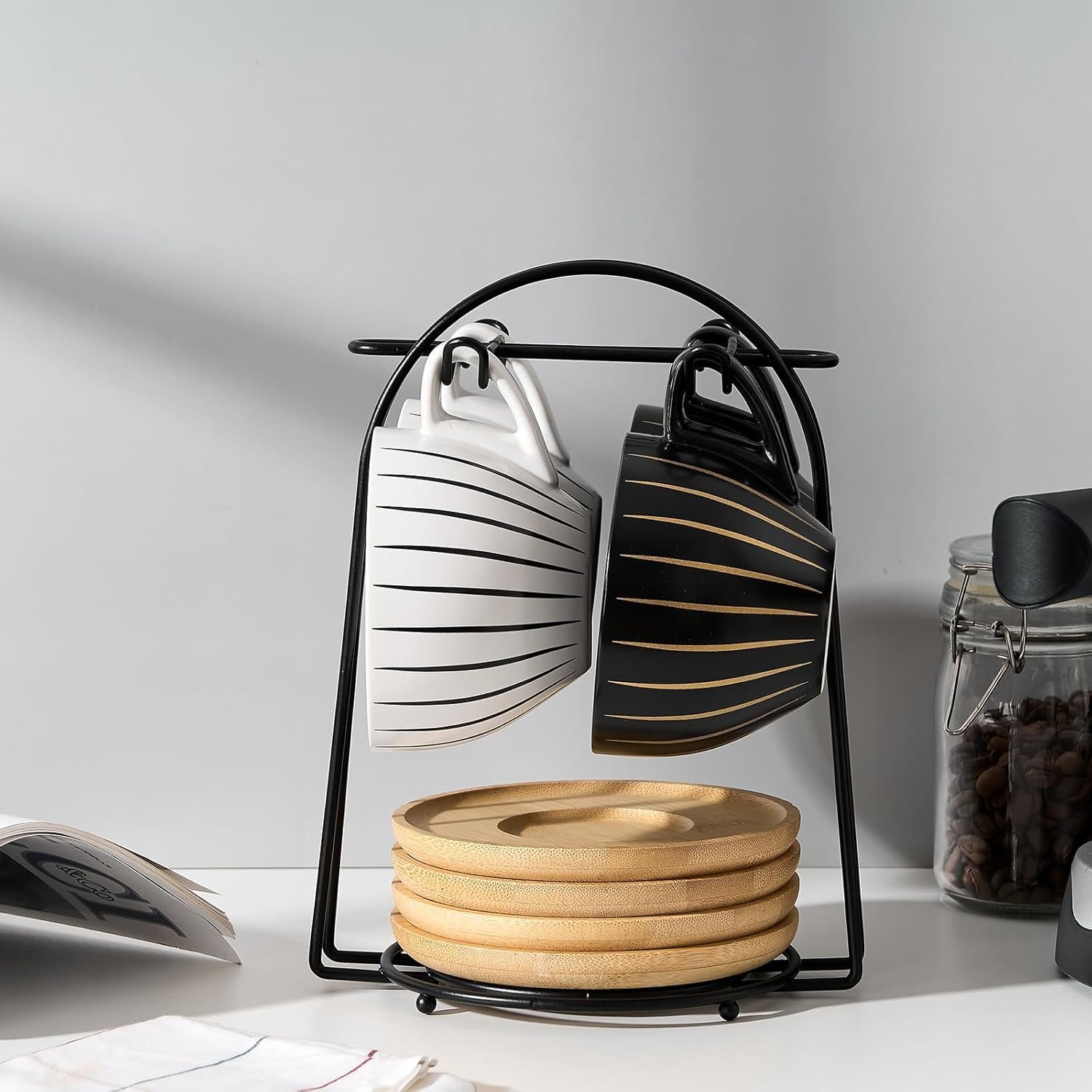 • Space-saving design: The combination of the coffee cup set and the iron frame prevents the cups and saucers from being randomly placed, keeping your countertop organized.