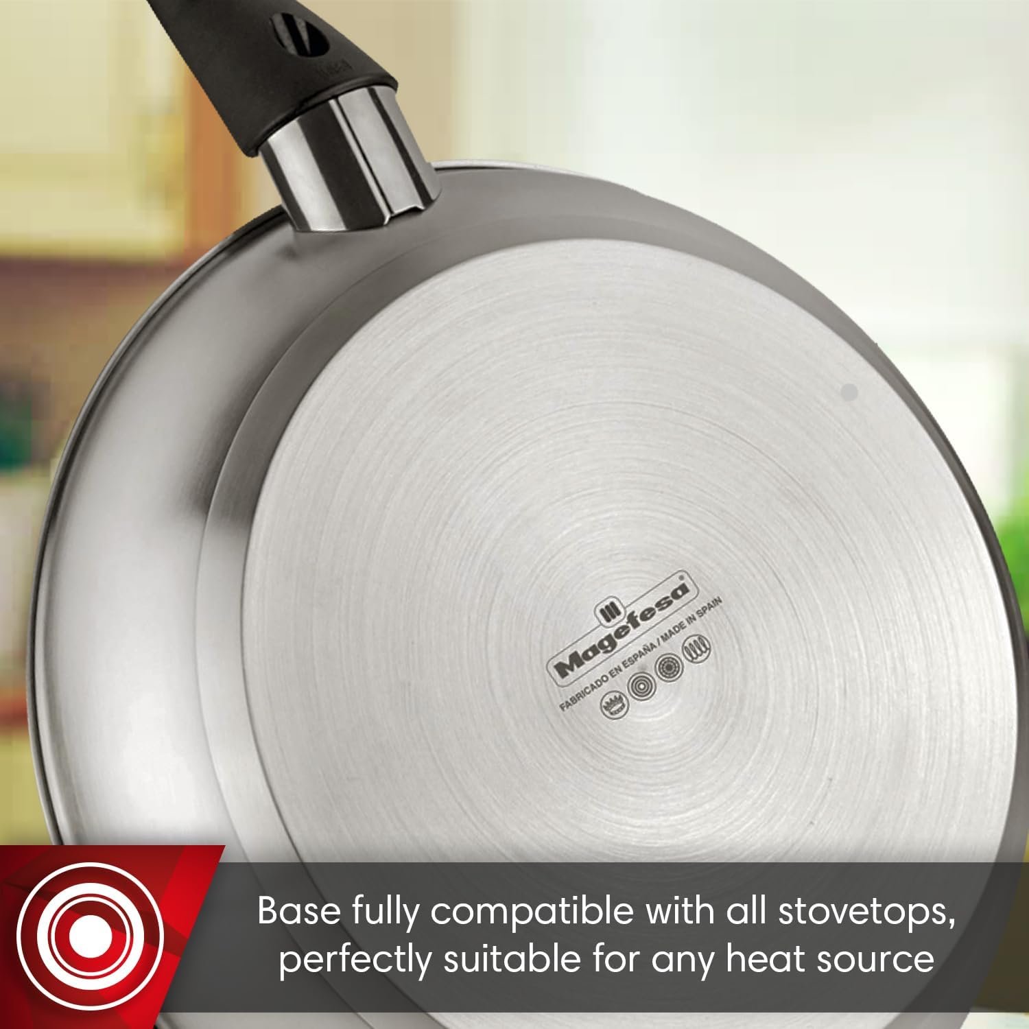 • Energy Efficiency: Saves energy with its full induction base, compatible with all stovetops.