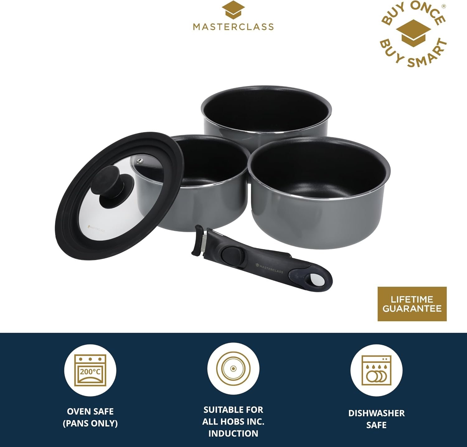 Overall, the Masterclass Smart Space Non-Stick Induction-Safe Stacking Saucepan Set is a great addition to any kitchen, offering a versatile and space-saving solution for cooking and baking. With its durable non-stick coating, comfortable handle, and universal lid, this set is perfect for home cooks and professional chefs alike.