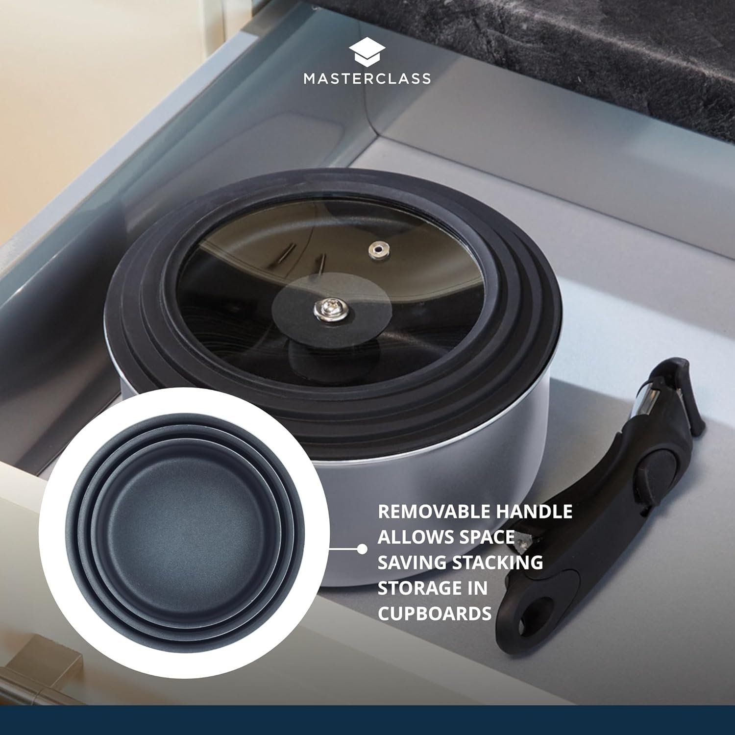 Masterclass Smart Space Non-Stick Induction-Safe Stacking Saucepan Set