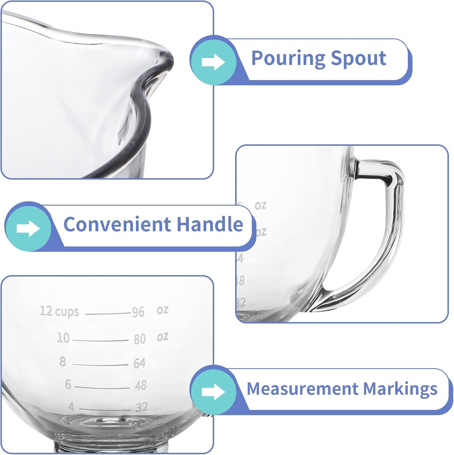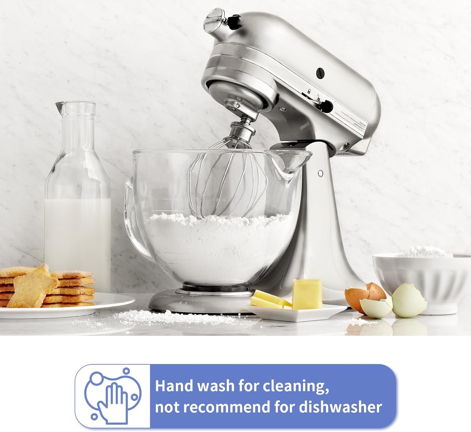 MOLIGOU Glass Mixing Bowl Compatible with Kitchenaid 4.5 and 5 Quart Tilt-Head Stand Mixers, 5 Quart Glass Mixer Bowl with Handle and Pour Spout