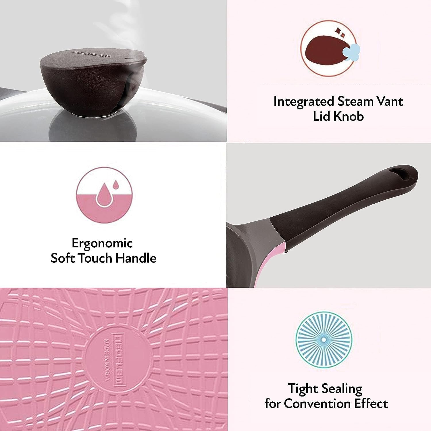 Our cookware is crafted with a charming pink hue, adding a touch of elegance to any kitchen. It makes a thoughtful and stylish gift for newlyweds or a perfect present to bring to a housewarming party. The vibrant color and superior functionality make it a delightful and practical addition to any home, blending aesthetics with utility.