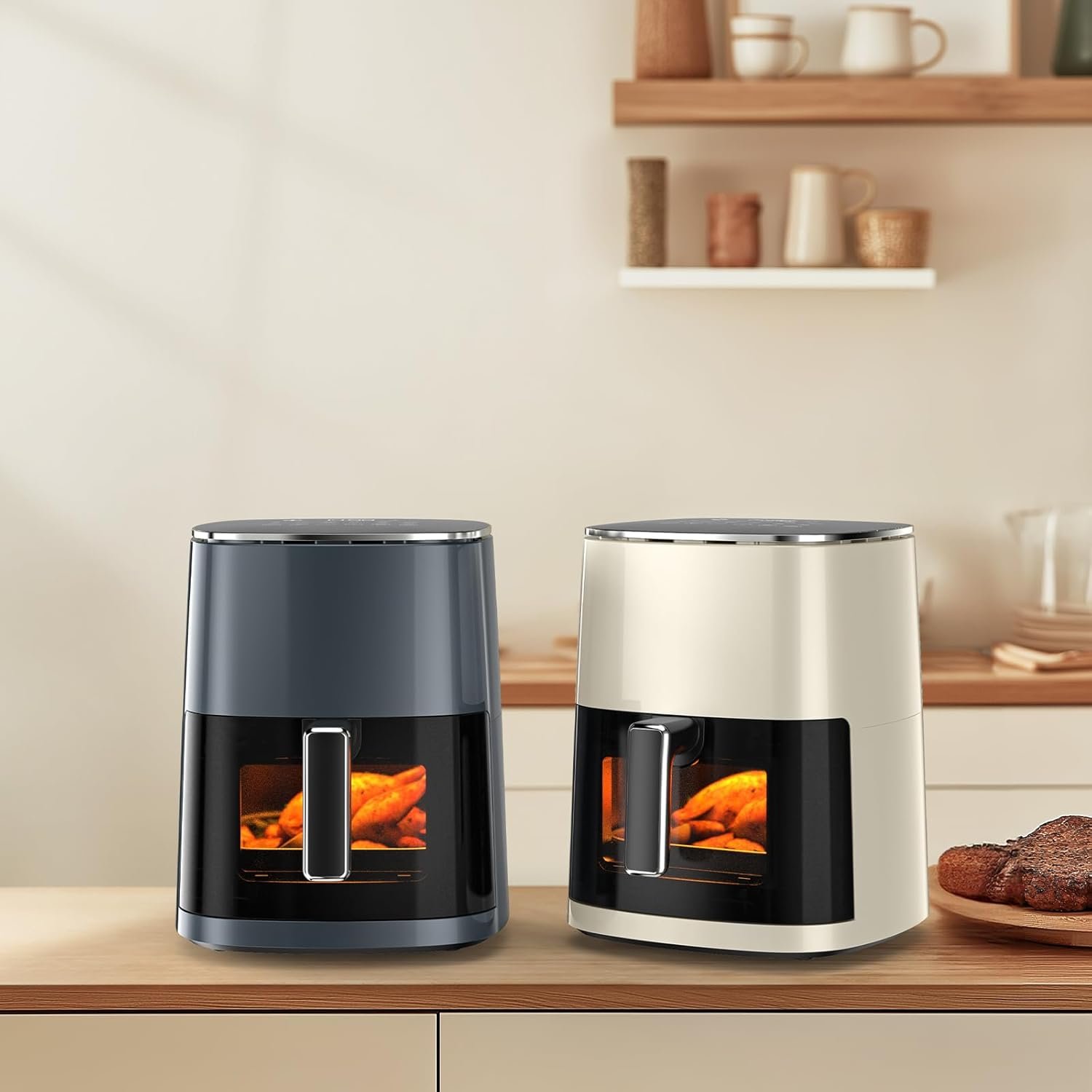 NEWBULIG Air Fryer, 6QT Square Airfryer with Visual Window, 400℉ Fast Heating Air Fryers Oven with Timer, Auto-Off, Non Toxic & Non Stick, Multiple 12 Modes for Roast, Bake, Dehydrate, Fry, Reheat