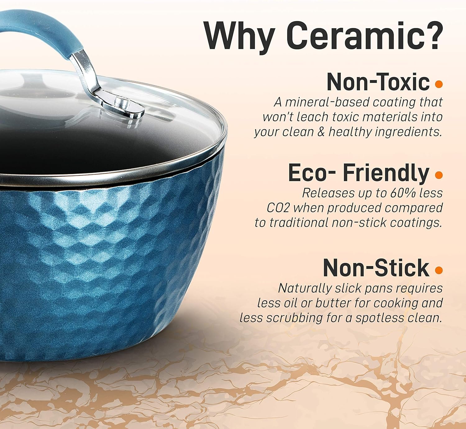 The nonstick coating on this cookware set is designed to provide a long-lasting and easy-to-clean surface. The PTFE/PFOA/APEO-free gold diamond ceramic exterior makes the pot more durable and provides better heat transfer, ensuring that your food is cooked evenly and thoroughly.