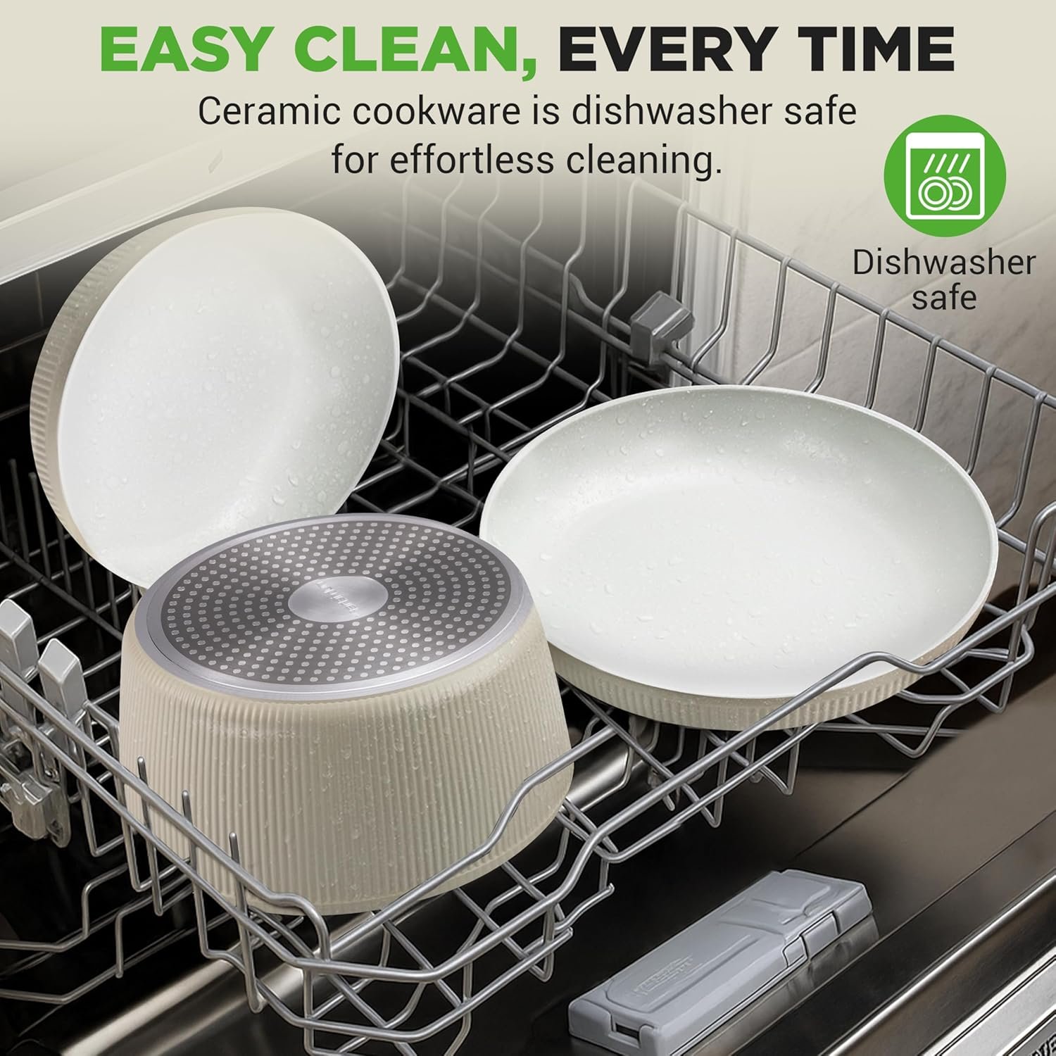 - Durable and scratch-resistant non-stick ceramic coating