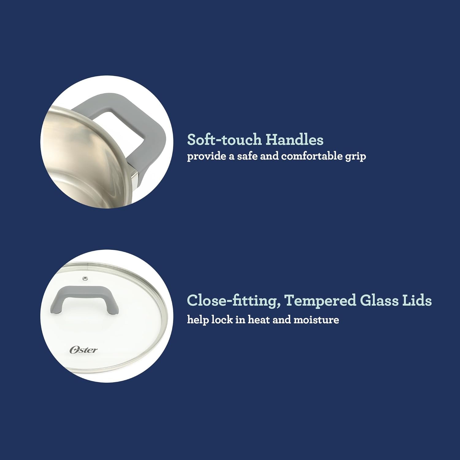 The Oster Beauford Stainless Steel Cookware Set comes with a range of features that make it an ideal choice for home cooks. These include: