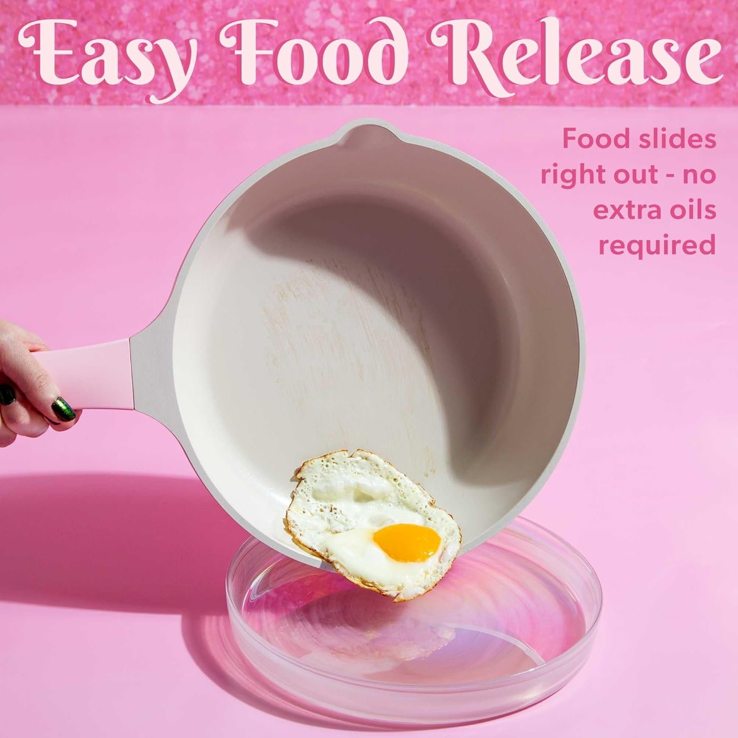 • Healthy ceramic nonstick coating for cooking with less oil and easy food release