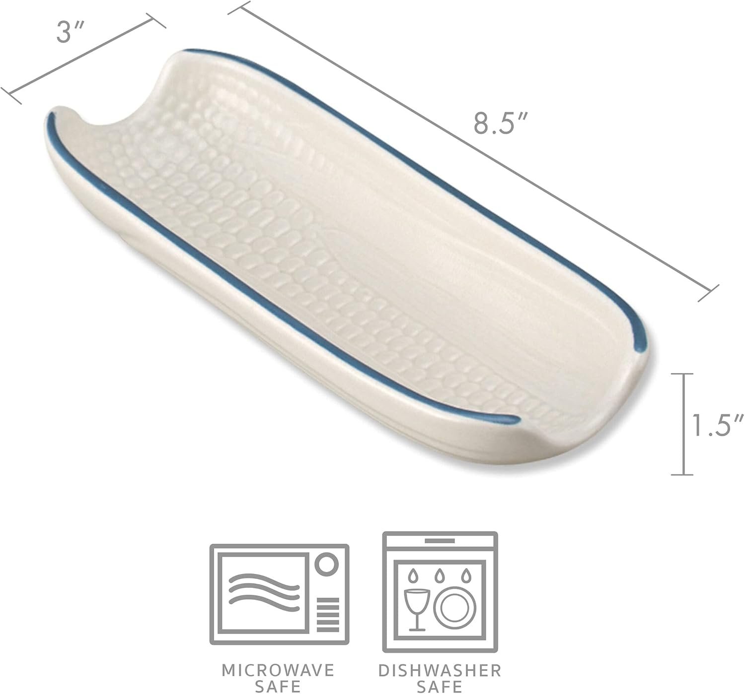 • Set of 4: Each dish measures 8-1/2 inches long by 3 inches wide, perfect for serving corn to a small group or family.