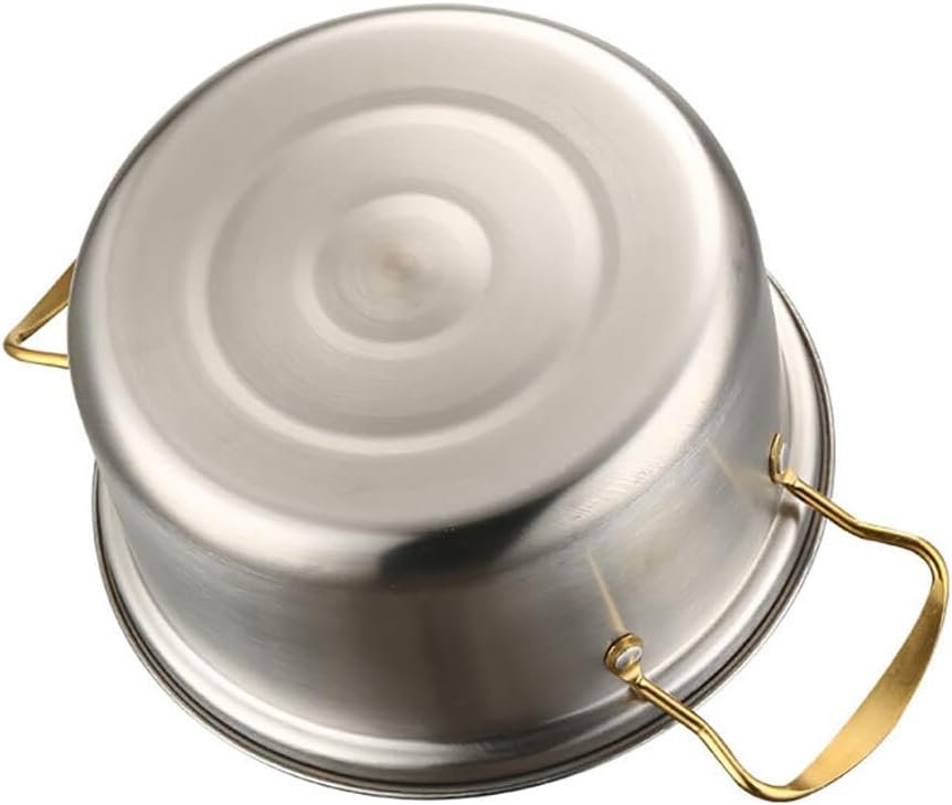 The package includes 5 x Pots, 5 x Lids, including a pan set with a glass lid. The tempered glass cover allows you to see the changes in food during cooking, and the gold handle on the cookware gives it a unique and luxurious look.