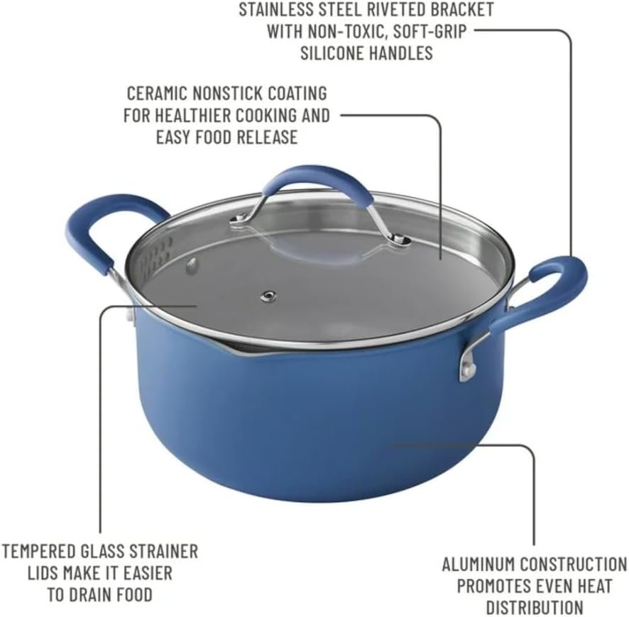 - Convenient Design: Tempered glass strainer lids simplify draining, and dual pour spouts on the saucepan and Dutch oven ensure dripless pouring