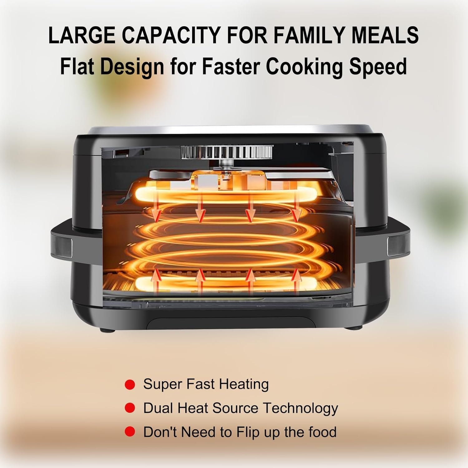• Dual heating elements and 360° rapid air circulation technology for faster and more even cooking