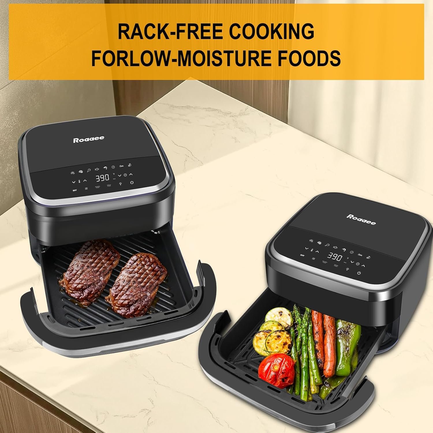 • See-through viewing window and built-in interior light allow for real-time food monitoring