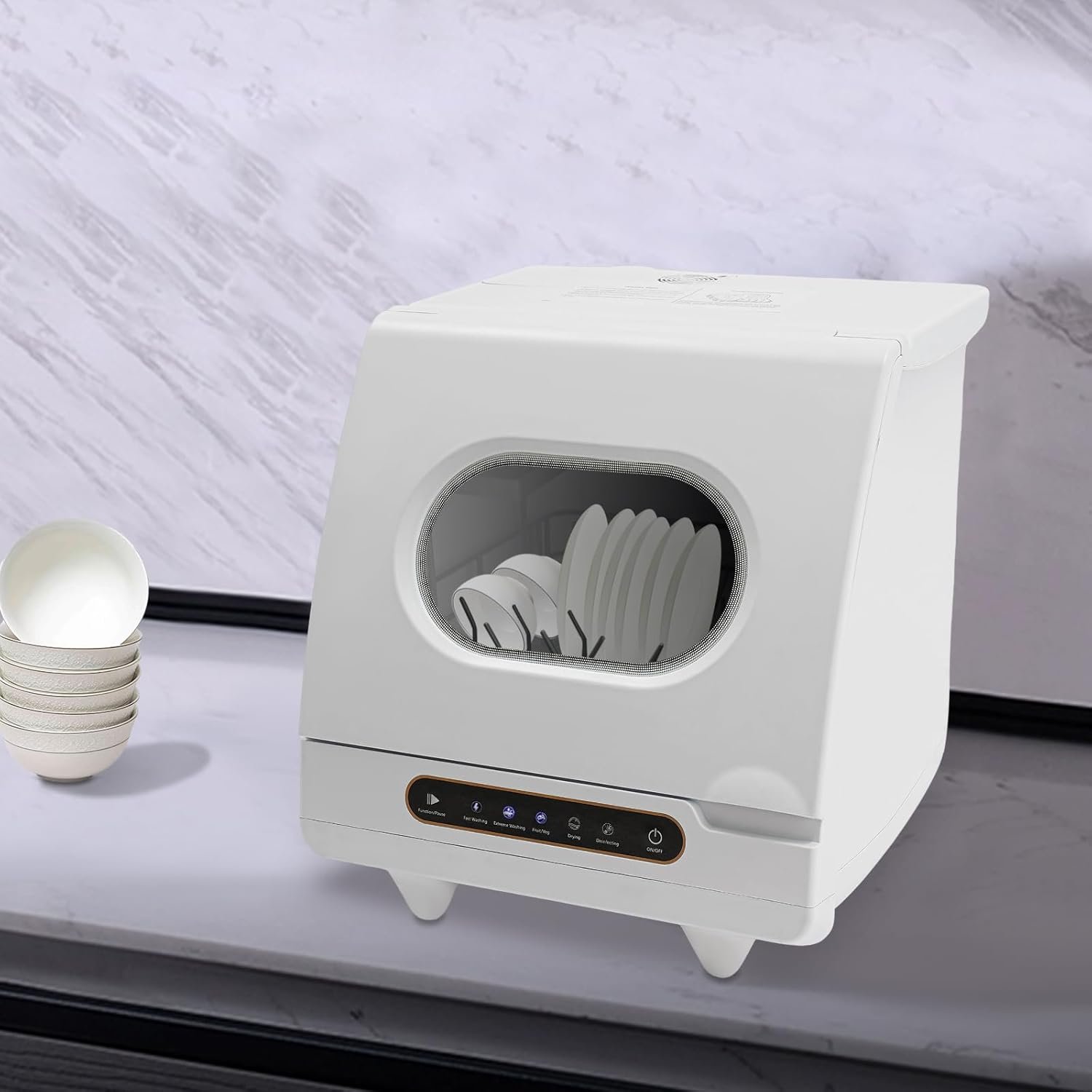 This countertop dishwasher is designed to make cleaning dishes convenient and efficient. With its clear window, you can easily observe the washing condition of your tableware during operation. The removable outlet filter prevents foreign objects from clogging the inside of the pipe and makes it easy to filter and pour out solid residue.