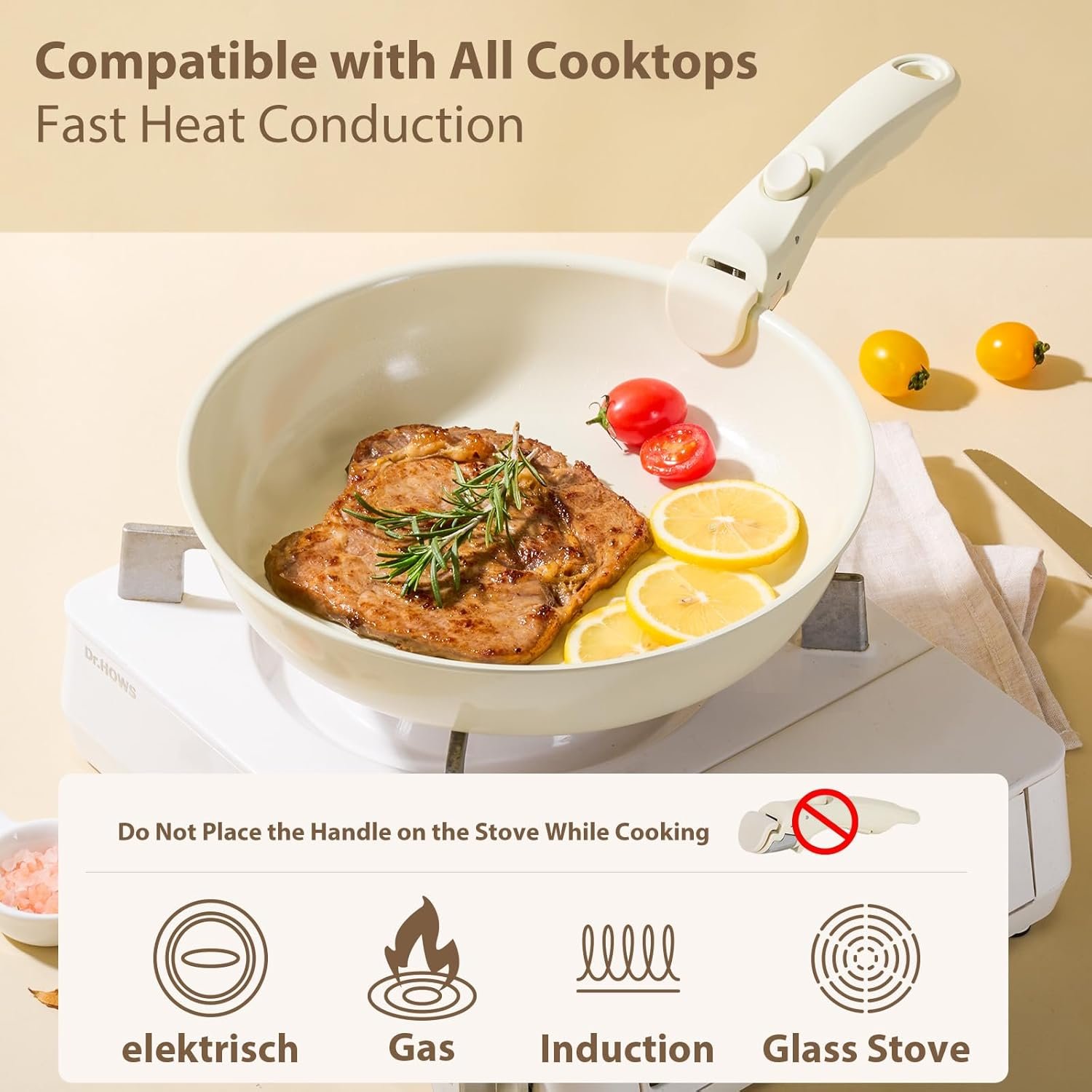 - Space-Saving Design: Free up valuable cabinet space with our detachable handle system, saving up to 70% more room compared to traditional pots and pans.