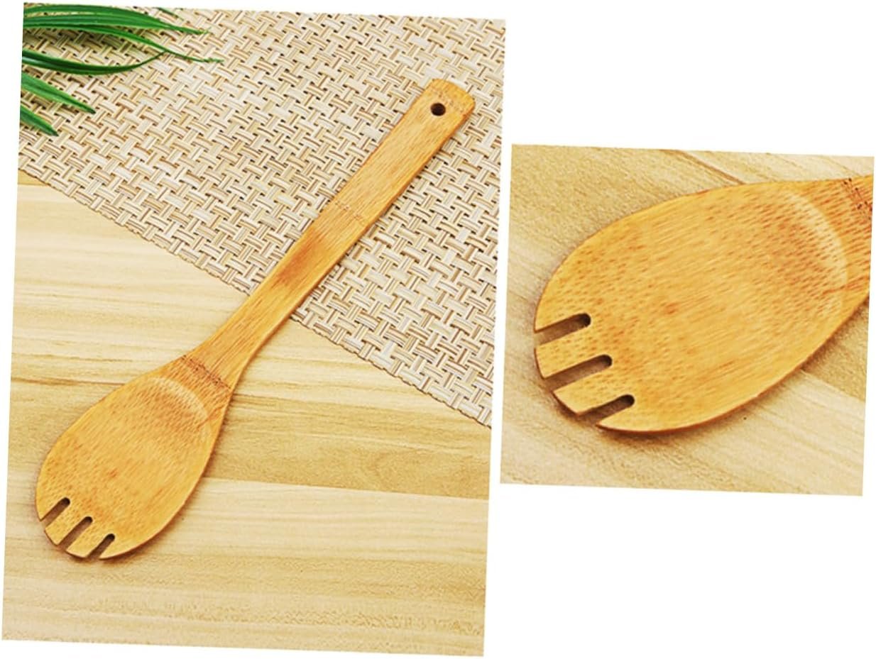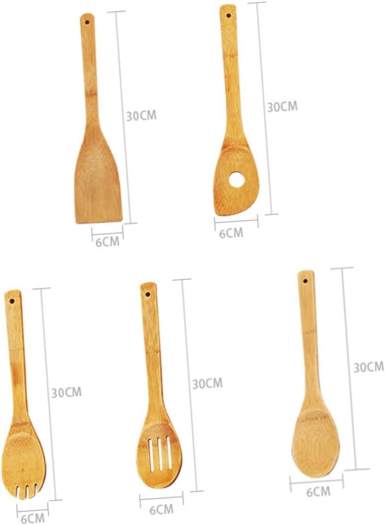 This set of cooking and serving spoons is made from the most renewable source in the world, making it an eco-friendly choice for your kitchen. The wooden kitchen utensils absorb very little moisture, so they won’t shrink, and are naturally stronger and more durable than other wood spoons. They won’t absorb food, stains, or cross-contaminate your food, making them a great choice for cooking and serving. The set includes a turner spatula, single hole mixing spoon, slotted spoon, spoon, and rounded fork, making it a well-organized and essential tool for your kitchen.