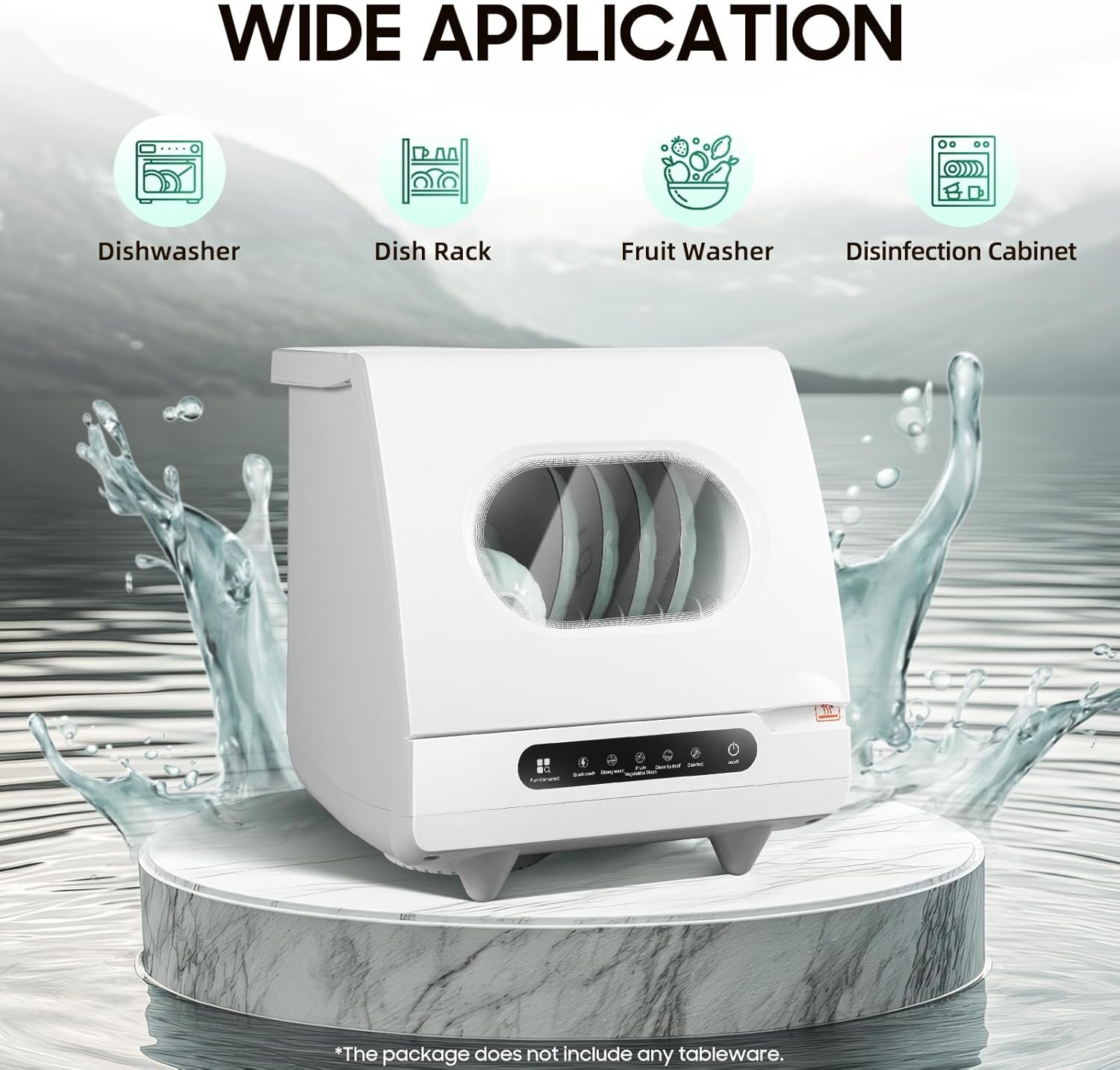 This countertop dishwasher is designed to make cleaning easier and more efficient. With its large capacity and multiple washing functions, it can handle a variety of tableware and kitchen items. The thoughtful design and compact size make it a great addition to any kitchen. The self-cleaning mode and automatic filling and draining of water ensure that the dishwasher remains clean and fresh. Whether you need to wash dishes, knives, forks, spoons, chopsticks, or cups, this dishwasher can handle it all. It is also suitable for washing vegetables and fruits, making it a versatile and convenient appliance for any home.
