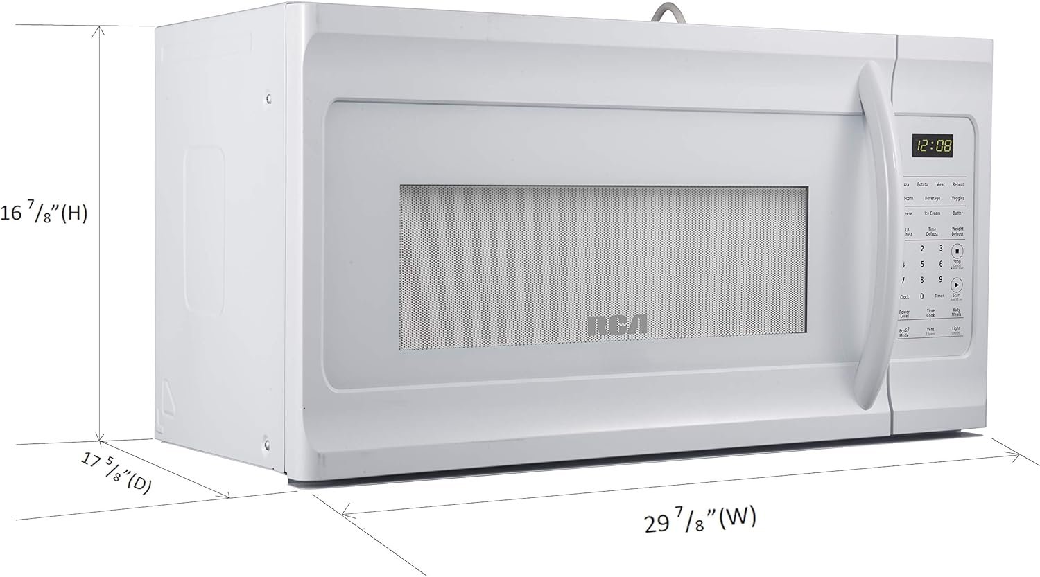 The RCA RMW1630 is a large and stylish white microwave oven designed to provide convenient cooking solutions for your kitchen. With its advanced features and user-friendly interface, this over-the-range microwave makes heating, defrosting, and cooking quick and easy.