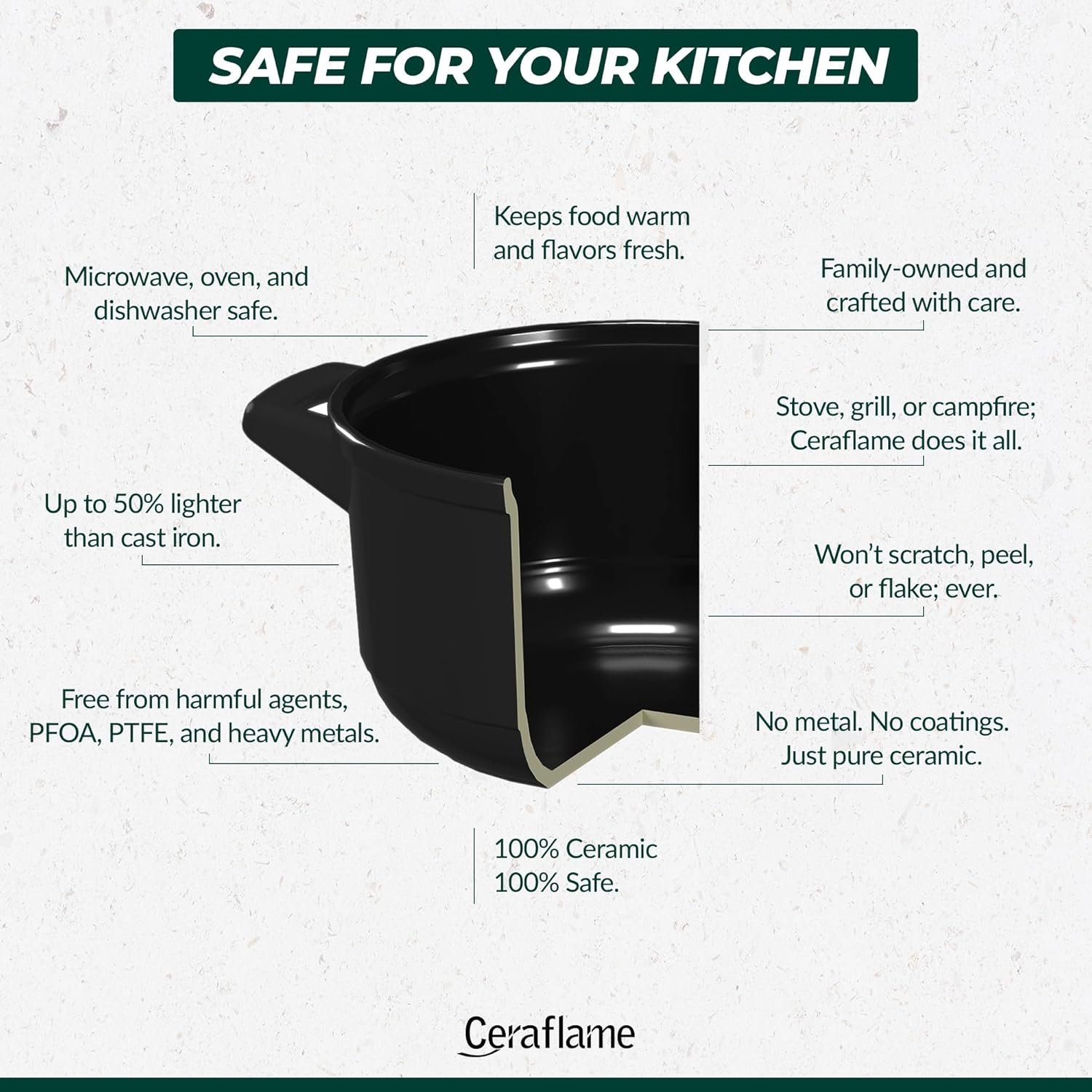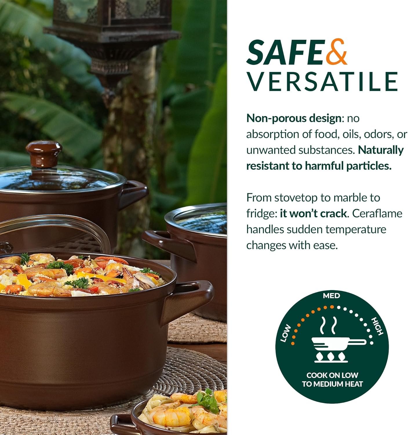 • Healthy Cooking: Ceraflame’s non-toxic and non-porous nature ensures that your food is cooked in a healthy and safe environment.
