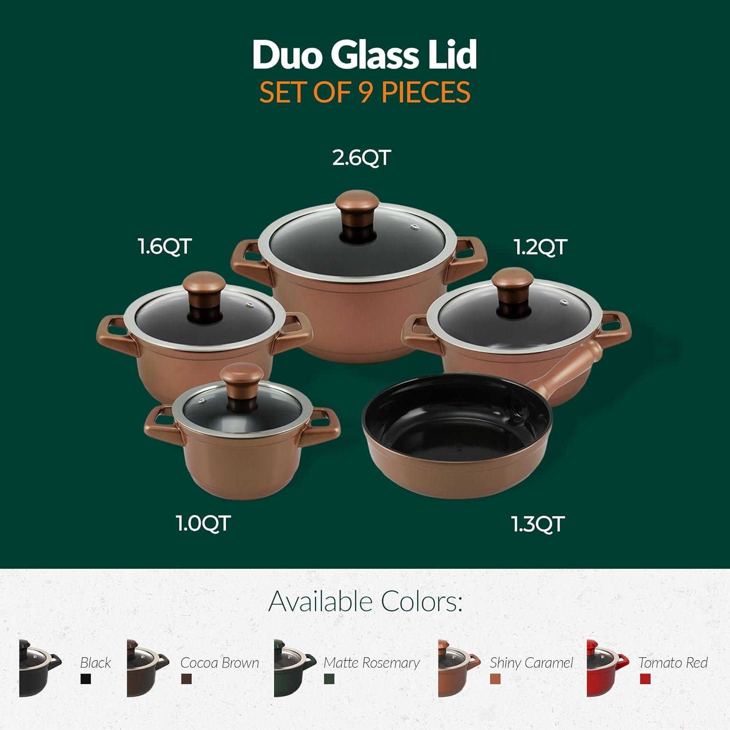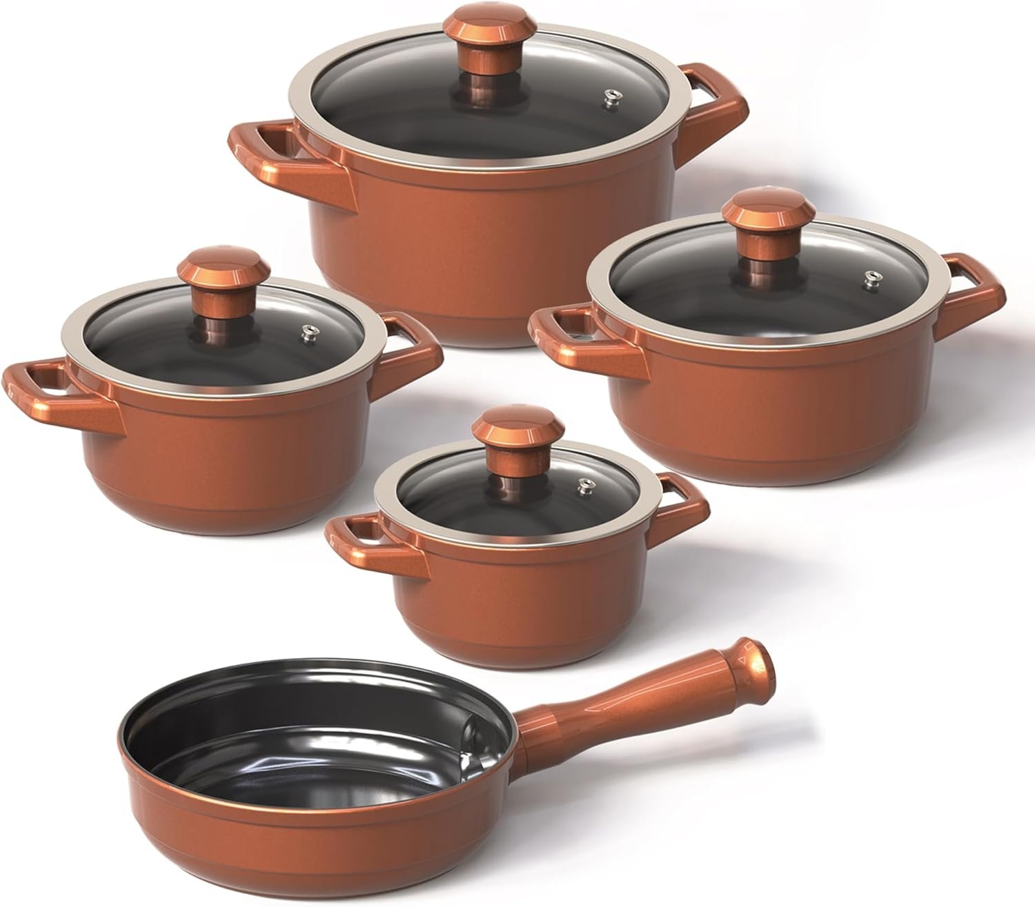 Real Ceramic, Non Scratchable, Non Toxic Cookware Set – Oven Safe Up to 1200F, Stovetop Agnostic, Dishwasher Safe, Longlasting and Lightweight – PFAS, PTFE, PFOA, PFOS – Shiny Caramel